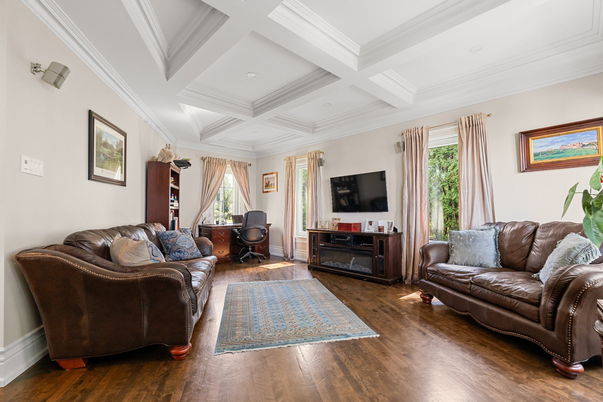 Light fixture in the room over the garage, speakers throughout the home, curtains in dining room and office on main floor.