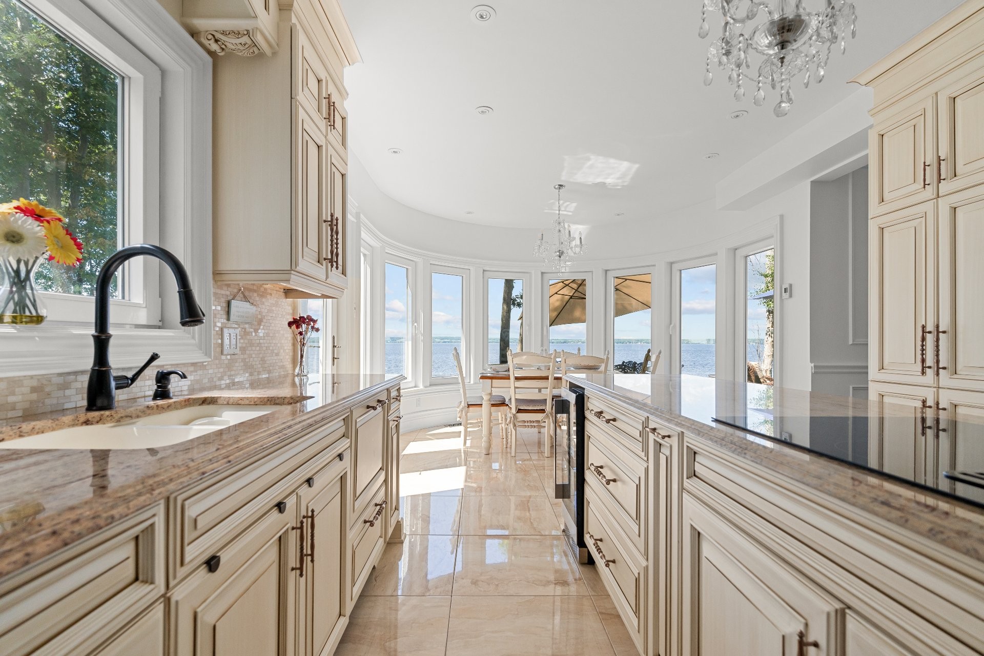 Fridge, stovetop, double oven, dishwasher, wine fridge, central vacuum, curtains, all wall sconces, and all light fixtures.