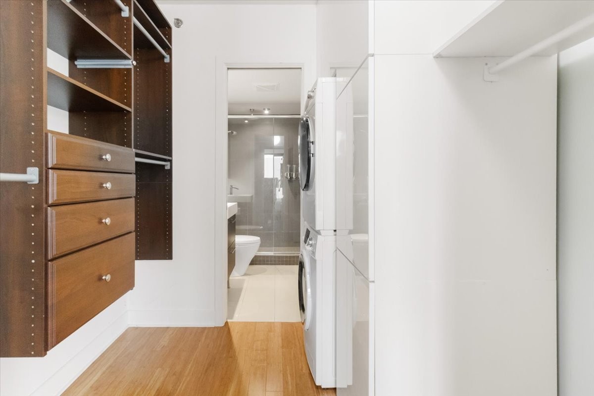Impeccable south facing high floor unit with high ceilings and large balcony . Great location in trendy Griffintown close to Bonaventure Metro station, square Victoria, Grocery stores, restaurants, and Lachine Canal with easy access to downtown and the highway. Enjoy living in the Lowney community with 4 buildings interconnected (Lowney 8 to 11), you can enjoy all the amenities by simply traveling from one building to another via rooftop bridges or via underground in the winter months. Amenities include (take a look https://youtu.be/tL4iaTPpU9E)