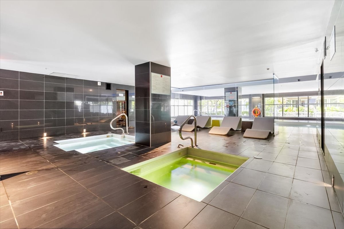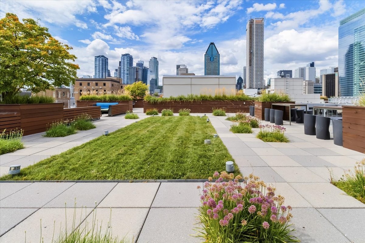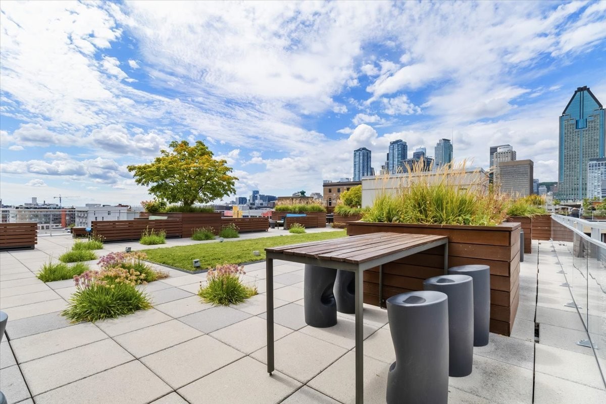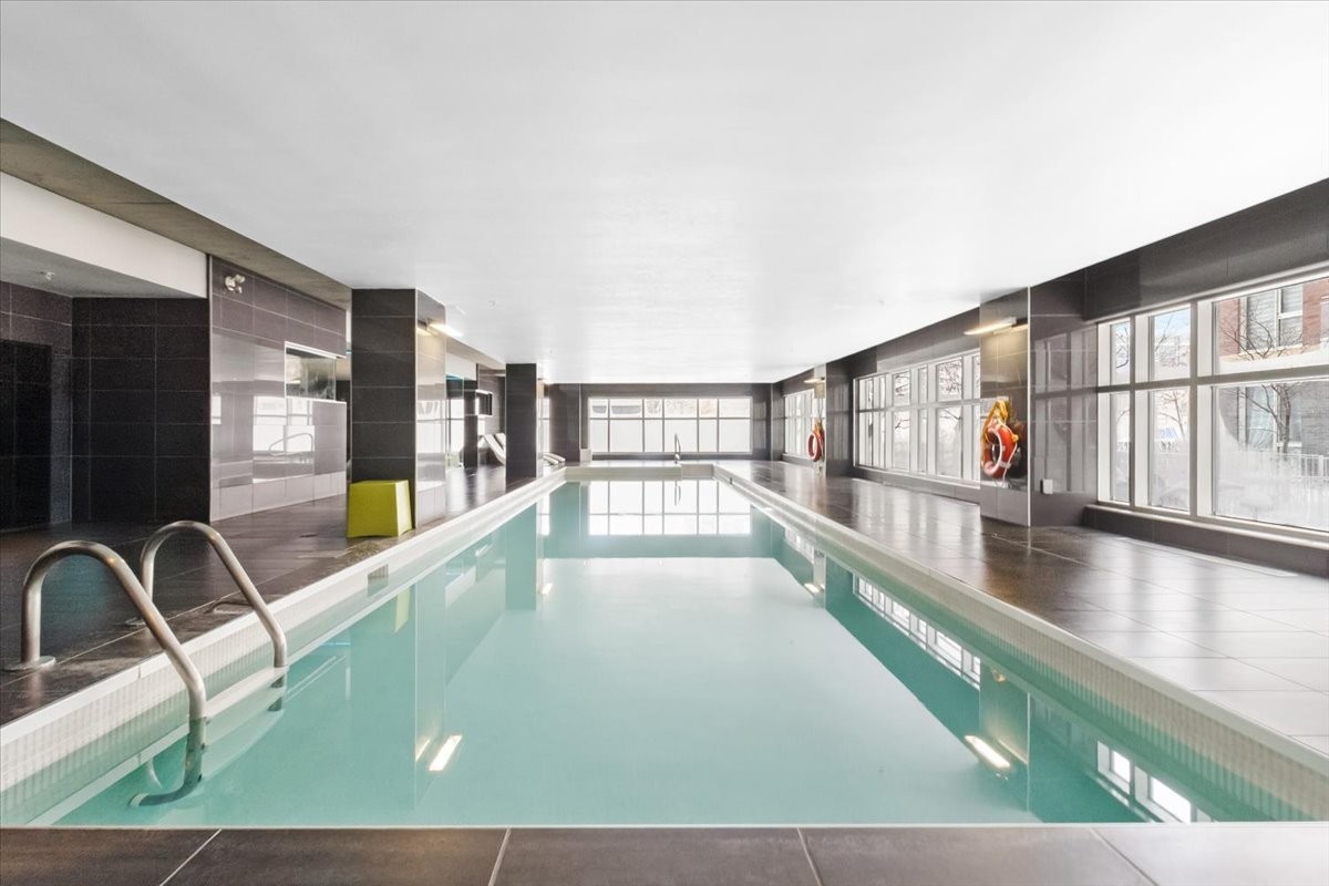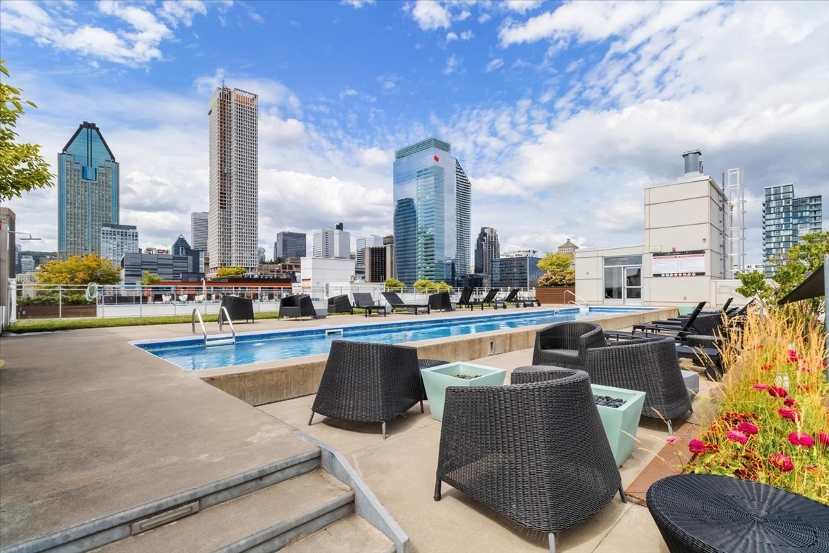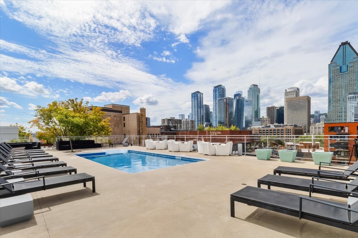 E) Great common areas (pool table, fireplace, and more)2 rooftop poolsRooftop garden with lounge areaUrbain chalet for those cold winter monthsBeautiful rooftop green terraces with BBQExercise GymIndoor pool, sauna, steam bath, whirlpool and cold bath***Hot water included in condo fees since it is a direct hot water system