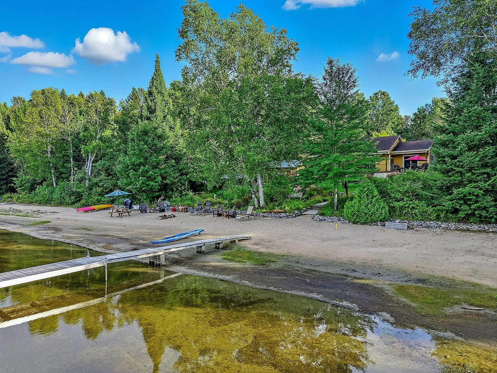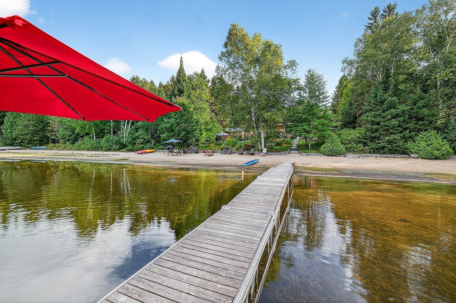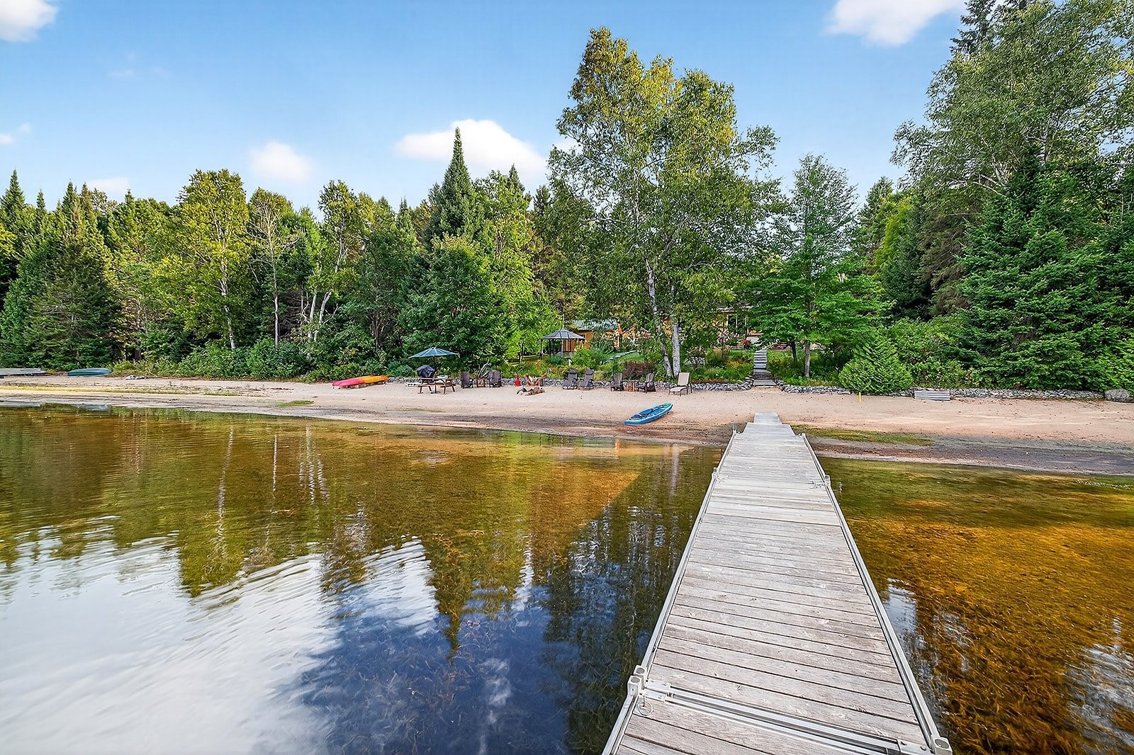 Outdoors, everything is designed to make the most of nature and lakefront living. The sandy beach provides unforgettable days with family and friends, while the dock makes it easy to enjoy all kinds of water activities. The beautifully landscaped grounds, adorned with lush vegetation and relaxation areas, invite rest and rejuvenation. Whether you enjoy campfires by the water, outdoor meals under a parasol, or quiet moments accompanied by birdsong, this unique environment will meet all your expectations.