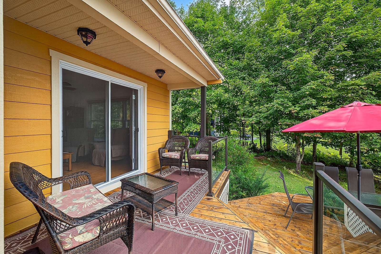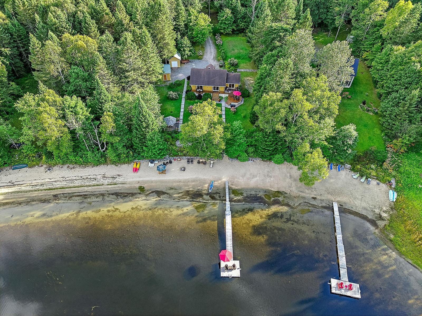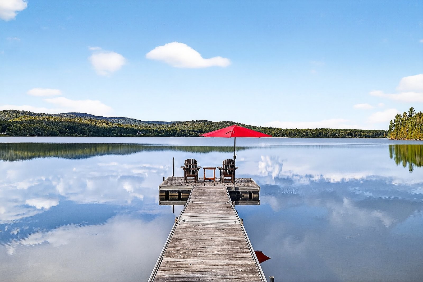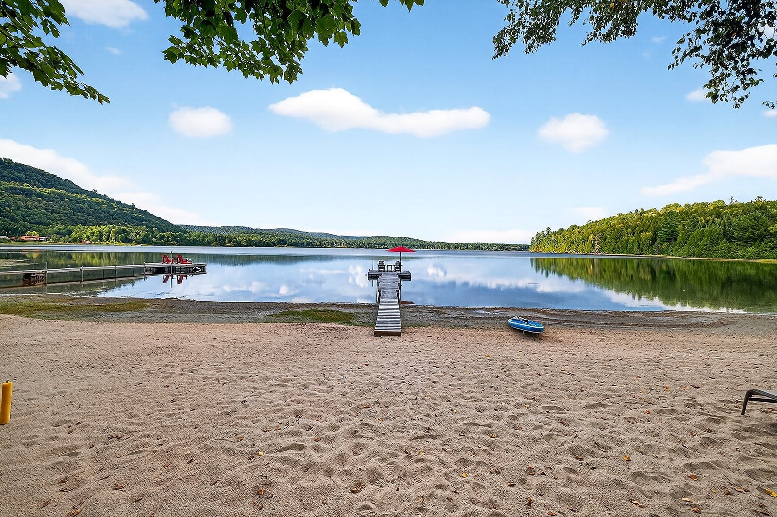 Outdoors, everything is designed to make the most of nature and lakefront living. The sandy beach provides unforgettable days with family and friends, while the dock makes it easy to enjoy all kinds of water activities. The beautifully landscaped grounds, adorned with lush vegetation and relaxation areas, invite rest and rejuvenation. Whether you enjoy campfires by the water, outdoor meals under a parasol, or quiet moments accompanied by birdsong, this unique environment will meet all your expectations.