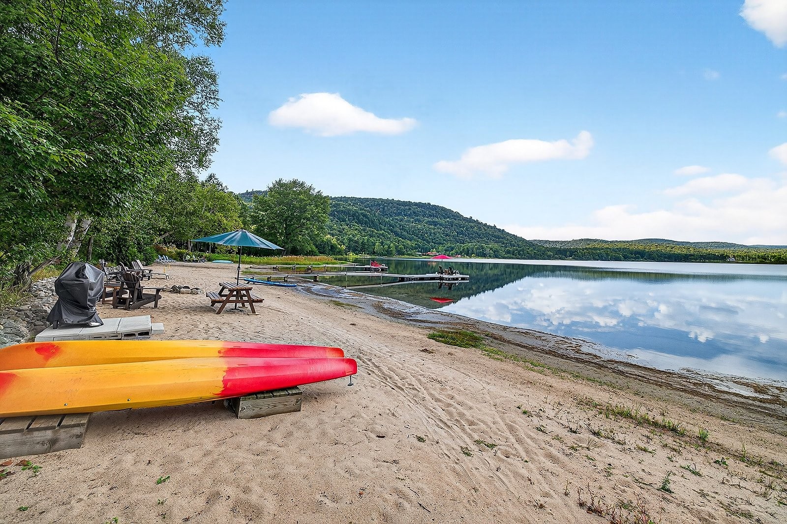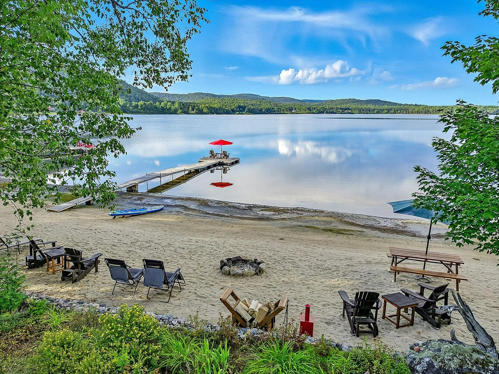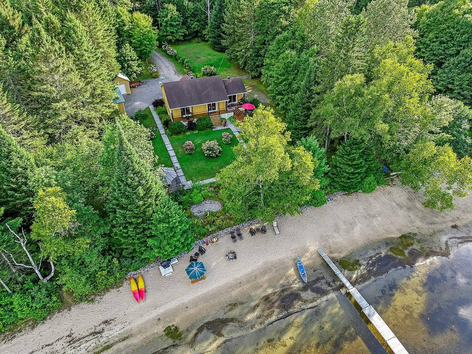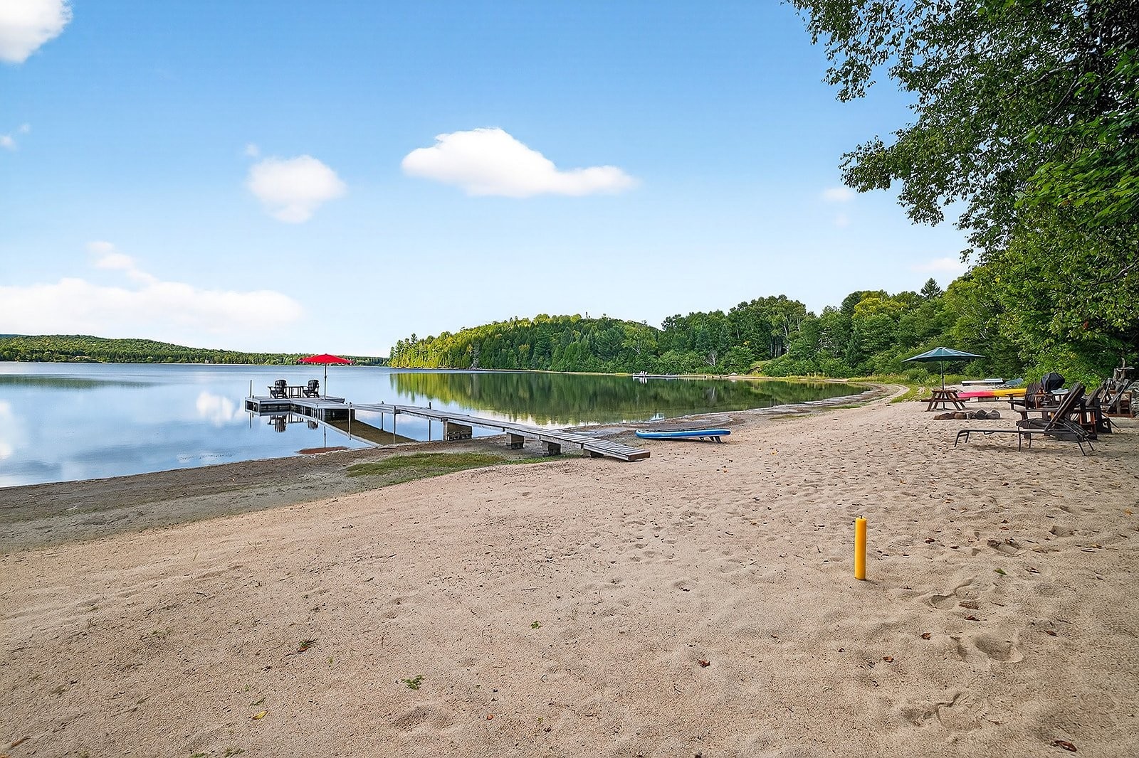 Nestled in a peaceful, green setting, this magnificent property located at 3, chemin de l'Ours in Notre-Dame-de-Pontmain stands out with its exceptional waterfront location. Bordered by a private sandy beach and equipped with a dock, it offers direct access to the lake and an idyllic setting for outdoor enthusiasts, swimming, kayaking, paddleboarding, and boating. Whether as a primary residence or a secondary retreat, this property perfectly combines comfort, functionality, and quality of life.