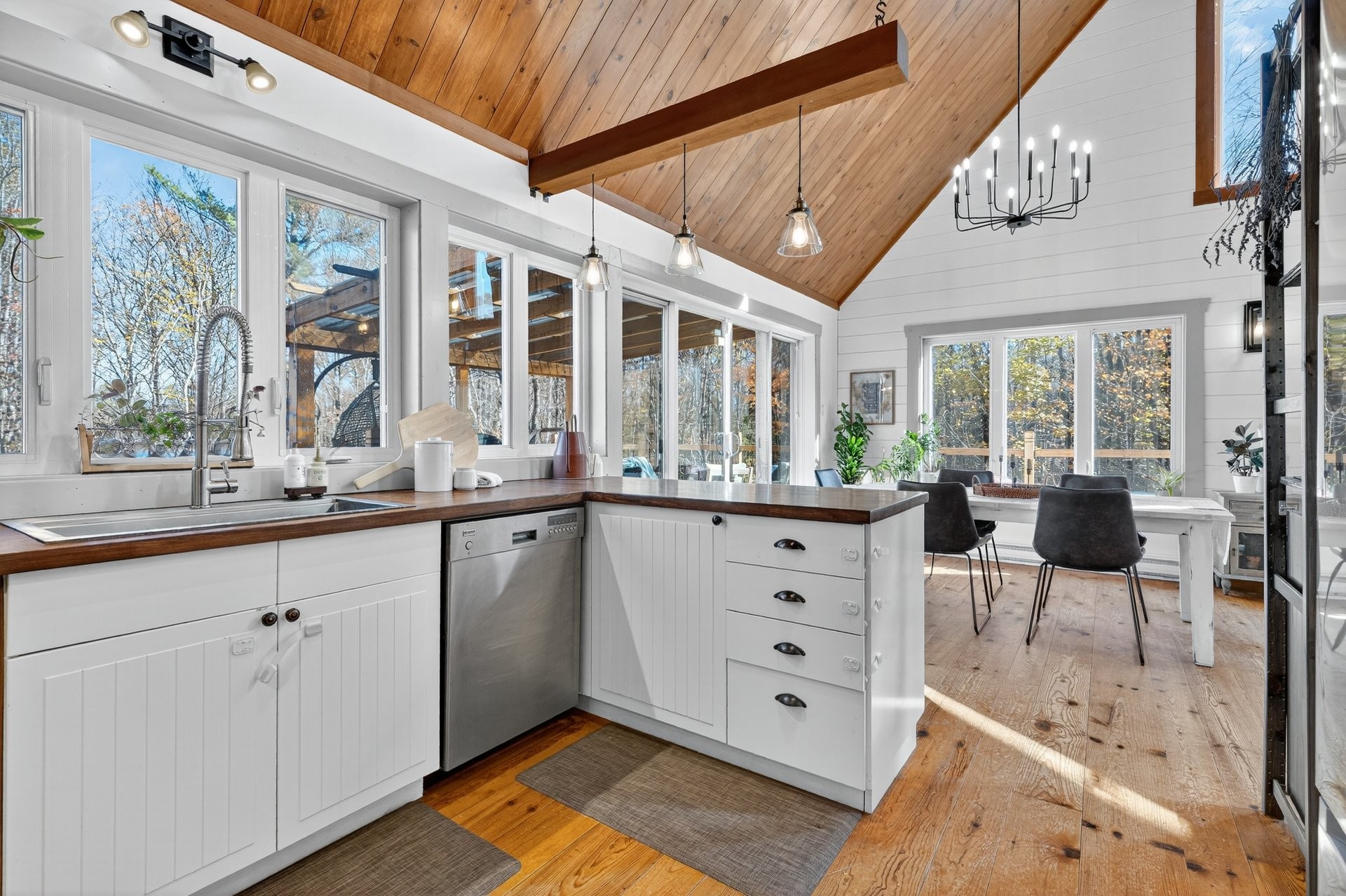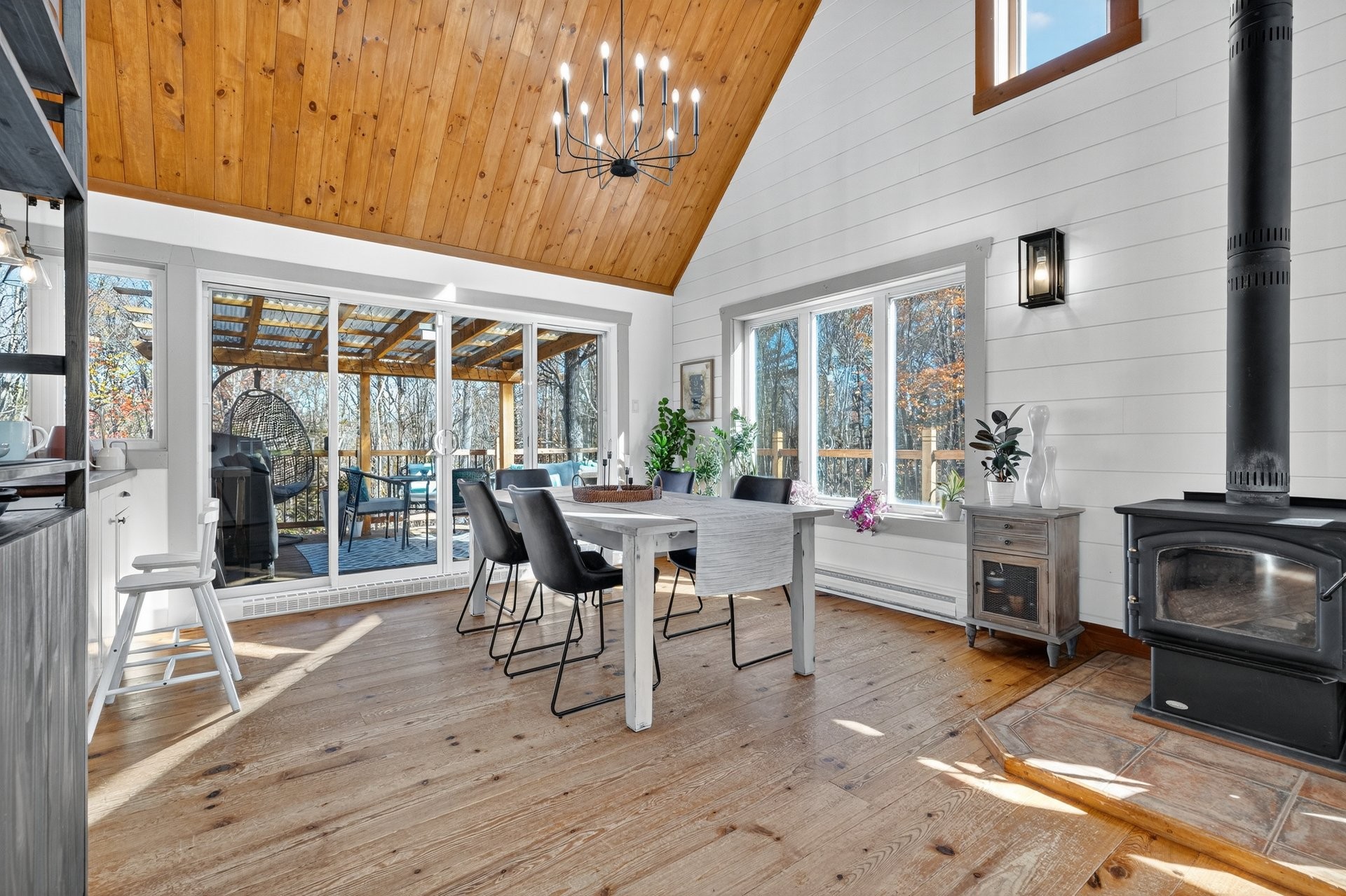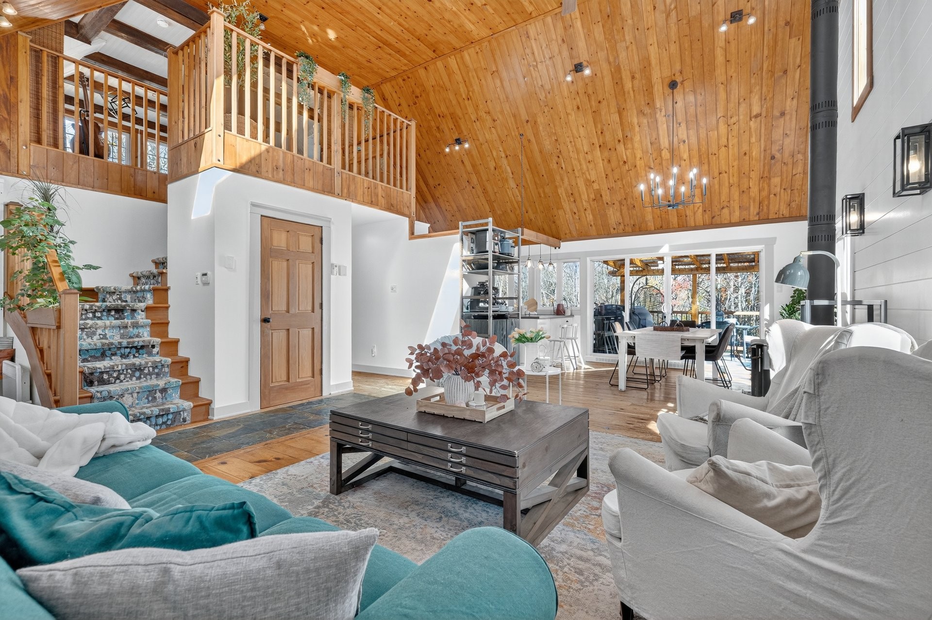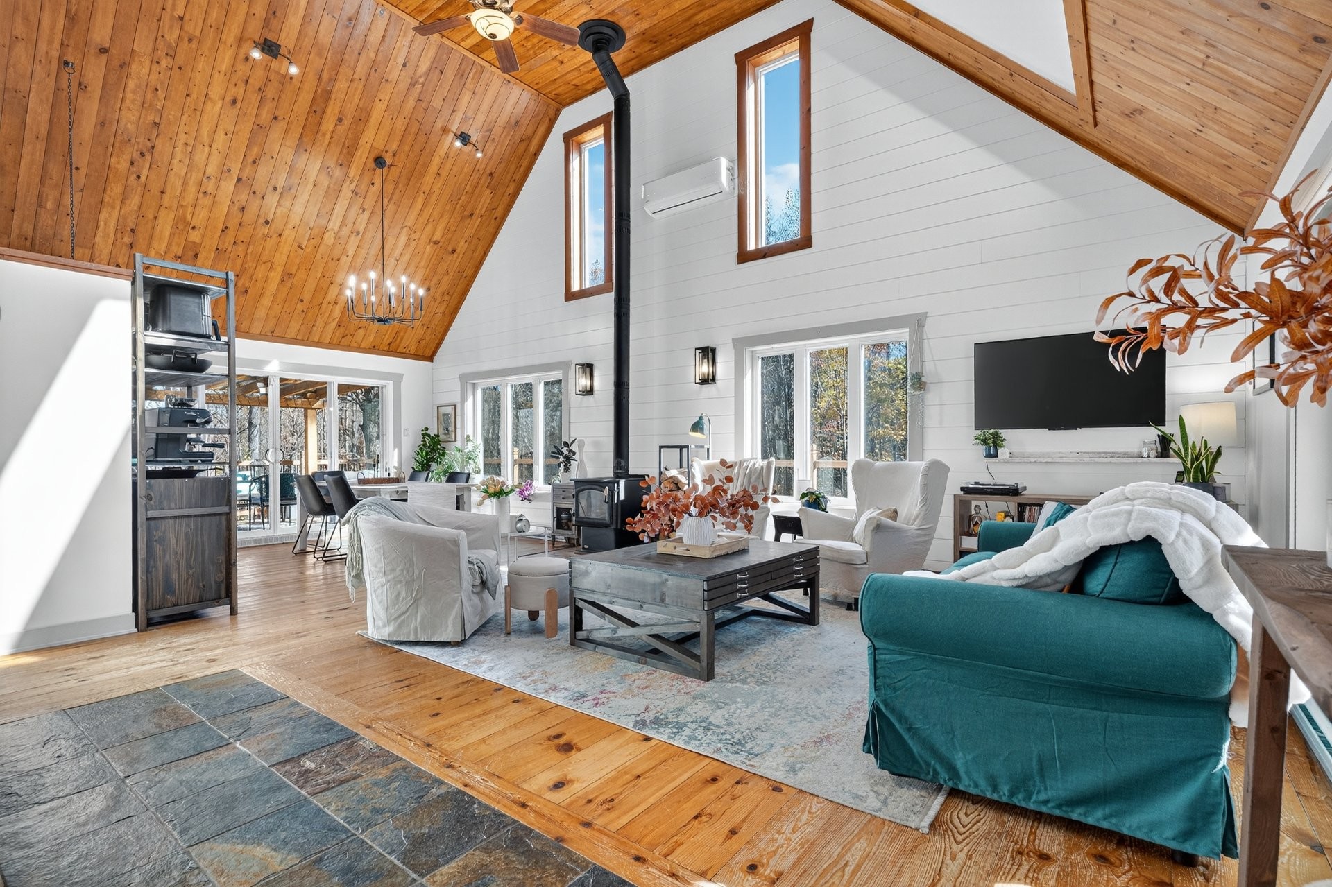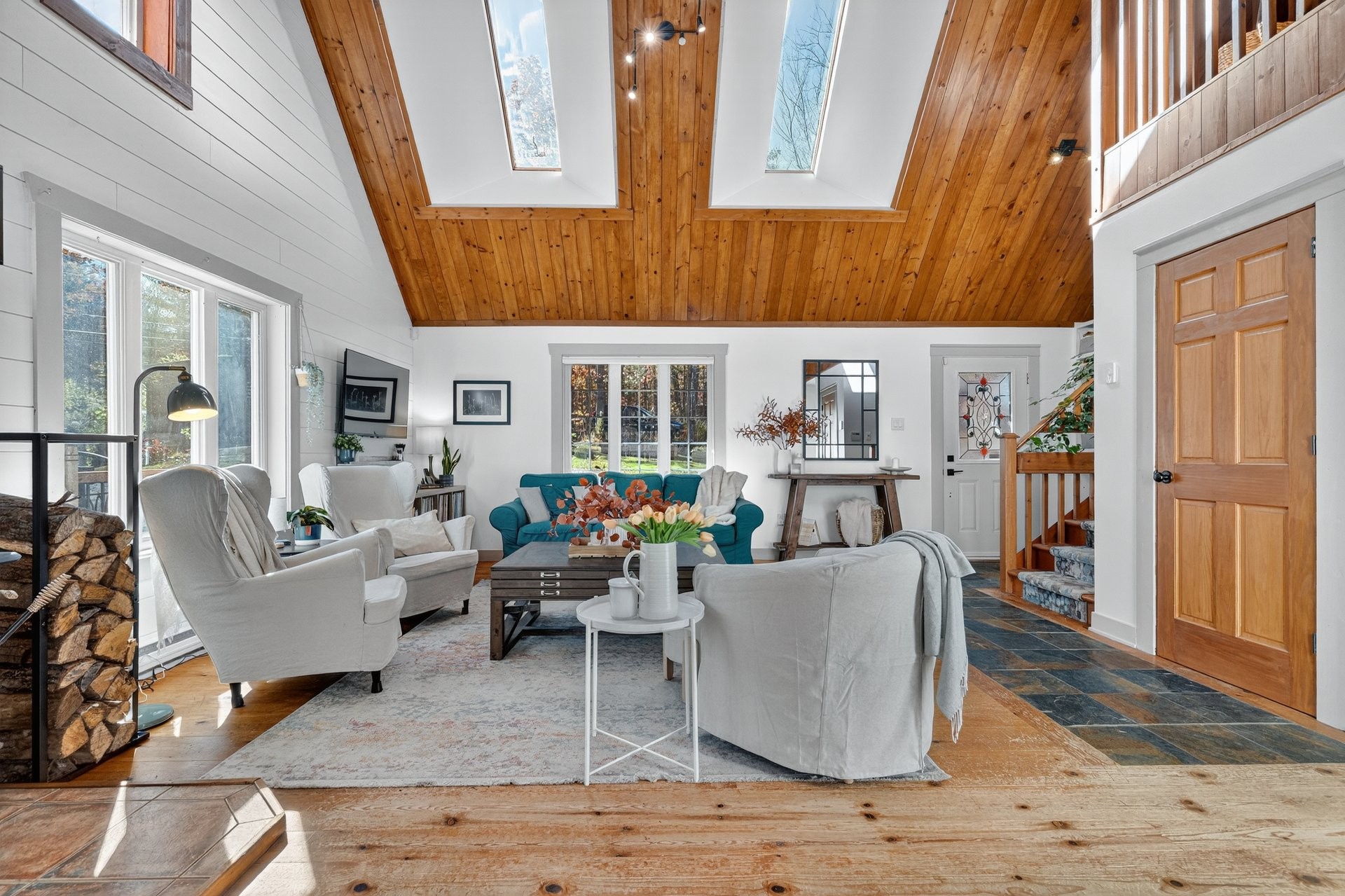 Welcome to 3 Ch. du Lac a peaceful retreat where nature, community, and character meet. This property offers a rare balance between rustic charm and modern comfort, set on more than 68,000 square feet of land across three distinct lots. Surrounded by mature trees and bordered by nature, the home sits on a quiet private street with minimal traffic, offering complete privacy and tranquillity.
