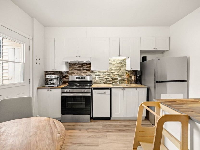 This beautifully maintained 2-bedroom, 1-bathroom modern condo is nestled in a quiet Lachine neighborhood, ideally located just minutes from downtown Montreal, with quick access to major highways, public transit, parks, schools, and everyday amenities. Situated in a well-kept three-story building with just three units, it offers both tranquility and convenience.