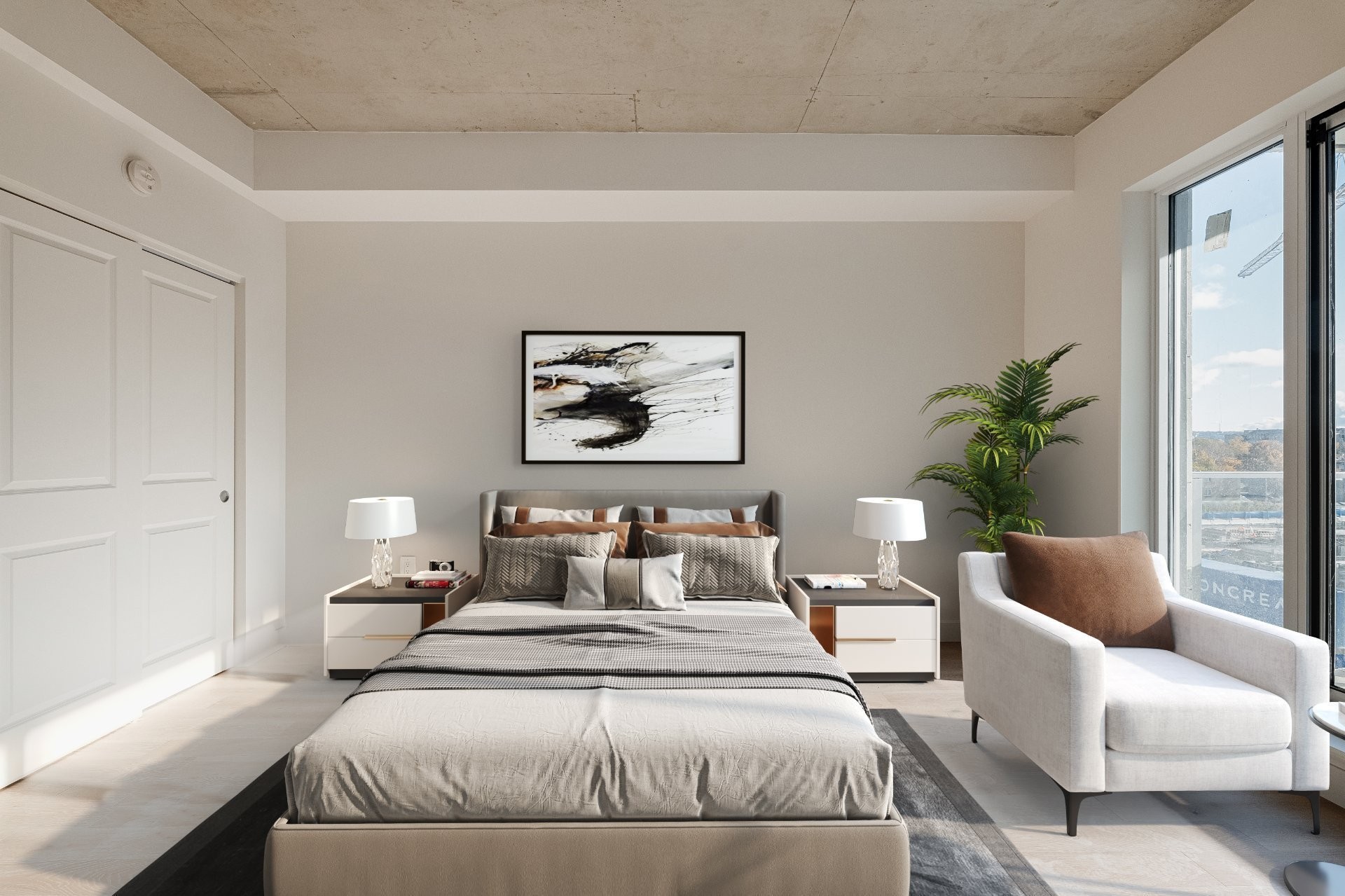 Modern studio apartment in the Monarc! Discover an exquisite loft perfectly situated in the heart of Ville Saint-Laurent. This prestigious project, expertly crafted by the esteemed architects LEMAY + ESCOBAR and proudly bearing LEED certification, offers a living experience beyond compare. Immerse yourself in a world of opulence, contemporary high-quality finishes, and a prime location that caters to your every need.