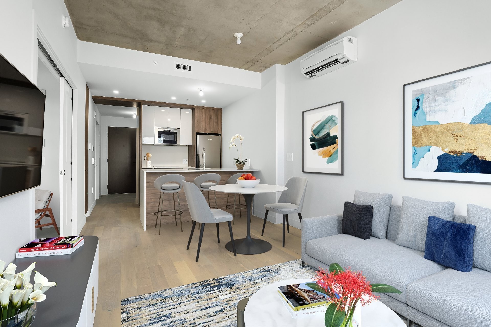 Enjoy modern luxury in this one-bedroom at the prestigious Monarc in Ville Saint-Laurent. Designed by LEMAY + ESCOBAR and LEED-certified, the unit offers large windows, a modern kitchen with high-end appliances, a sleek bathroom, a spacious bedroom with walk-in closet, wall-mounted AC, private balcony, indoor parking, and a storage locker. Residents have access to top amenities including a fitness center, yoga room, indoor pool, co-working space, VIP lounge, garden, green roof, and BBQ area. Ideally located minutes from highways, public transit, shopping, and downtown Montreal, this rental combines comfort, convenience, and style.