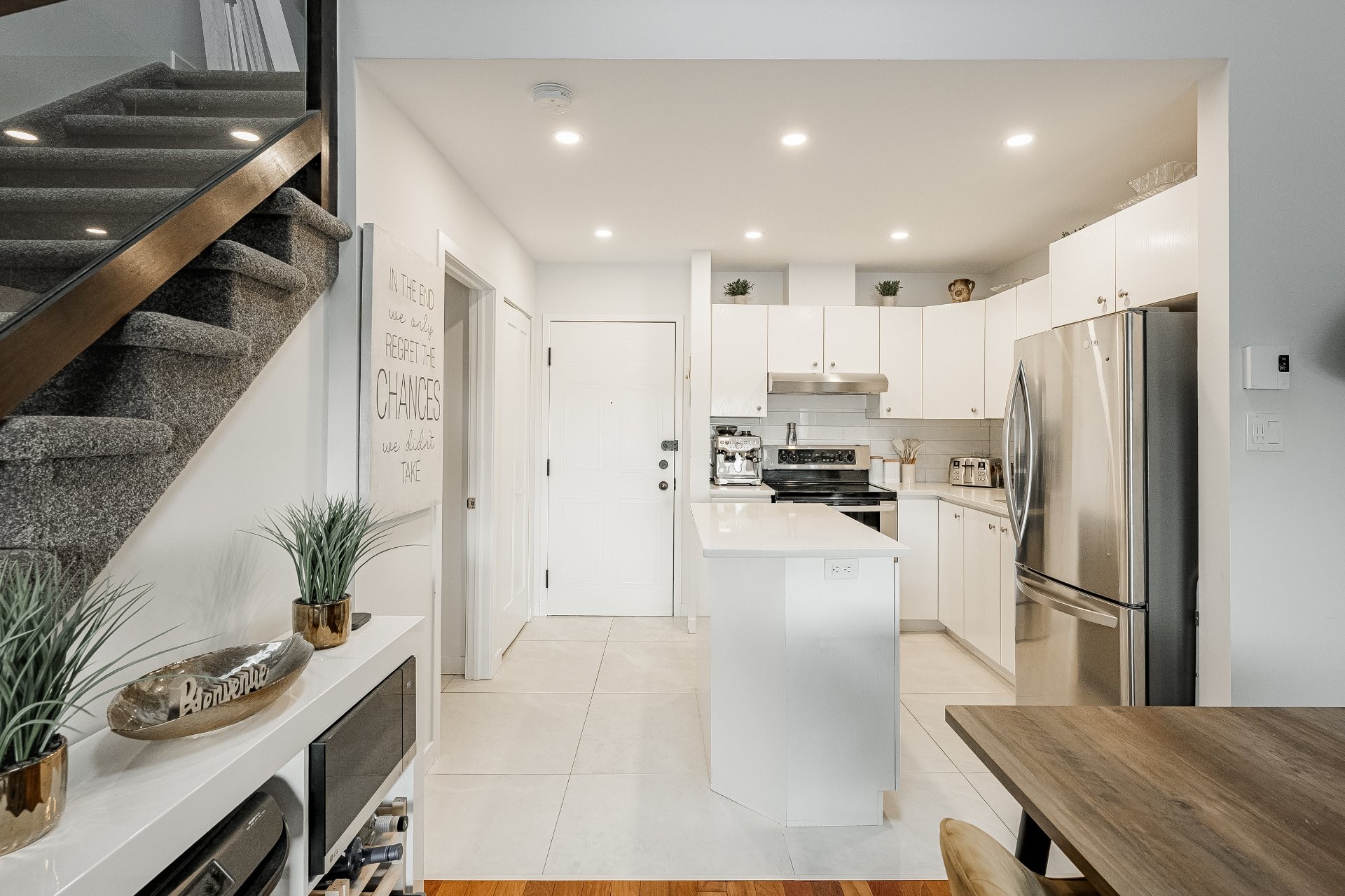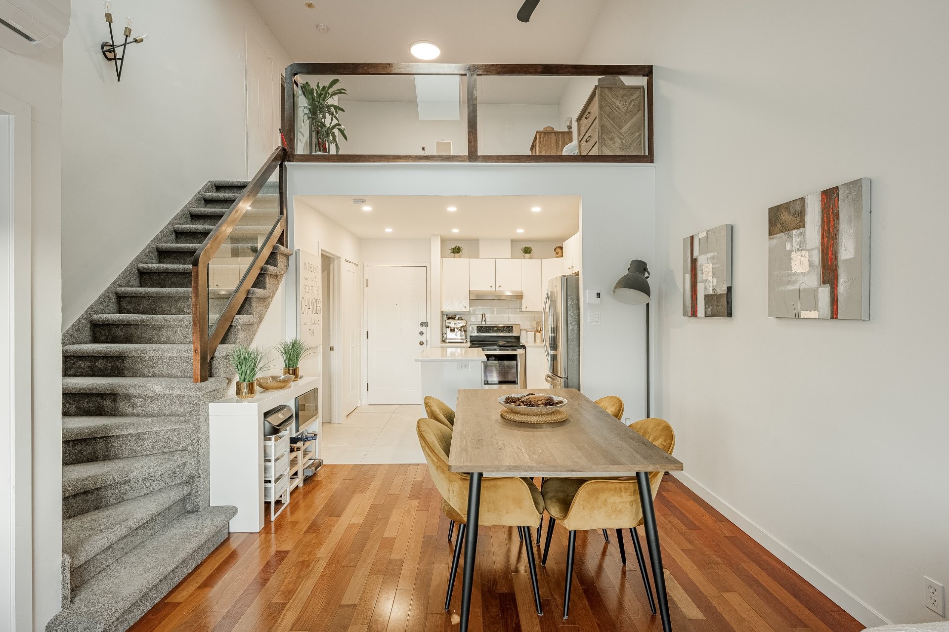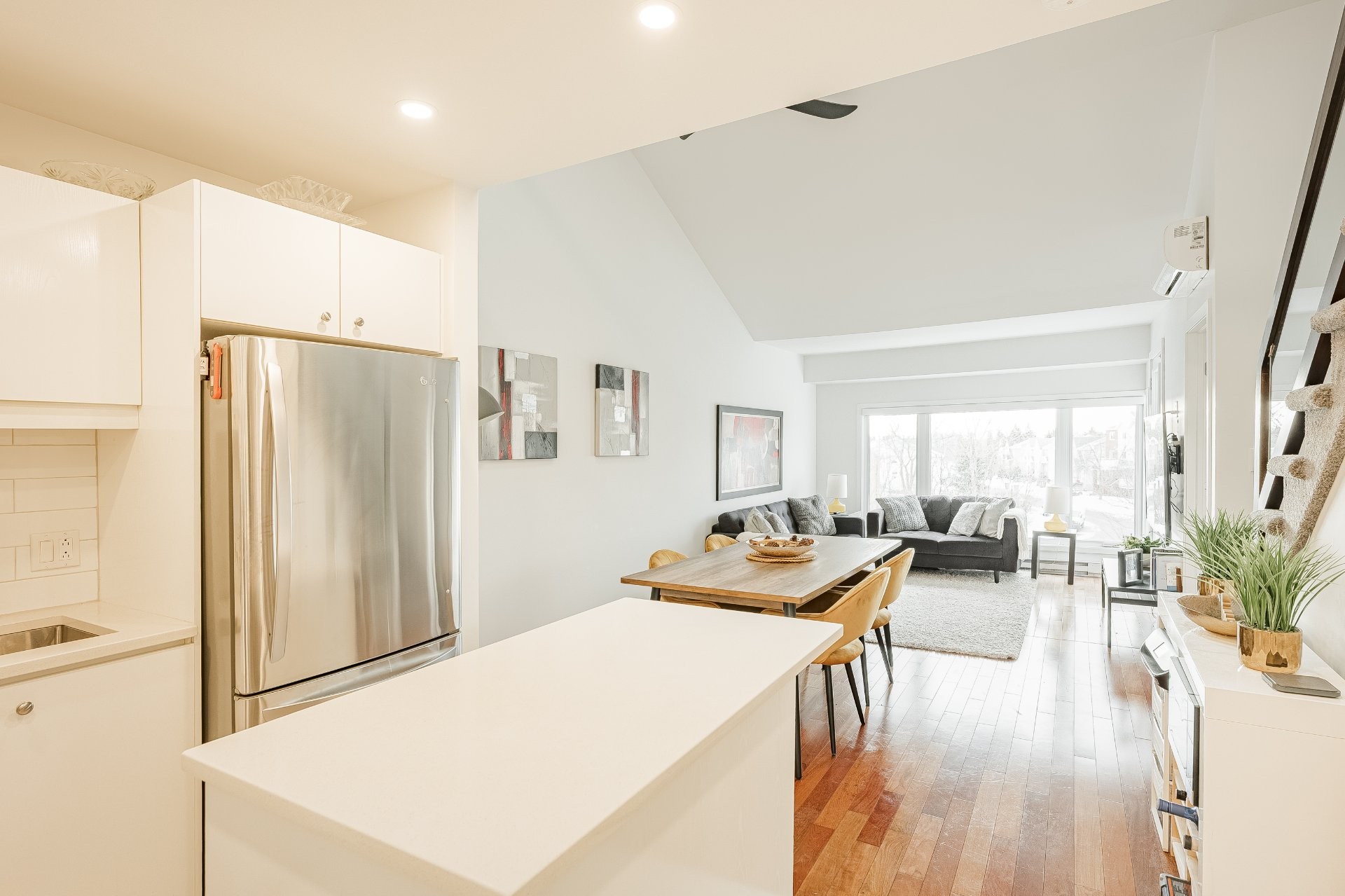 Bright and spacious condo with a mezzanine offering a closed bedroom plus an additional open space that can serve as a second bedroom, office, or den. Fully renovated in 2022, the unit features cathedral ceilings, skylights, and a functional layout with two bathrooms, including a powder room. Located on the 3rd floor of a quiet, well-maintained building, this property stands out as a rare opportunity in St-Hubert. Ideally situated near highways 116 and 30, with quick access to public transit, shops, and everyday services, it offers a practical balance between a calm residential setting and convenient urban access.