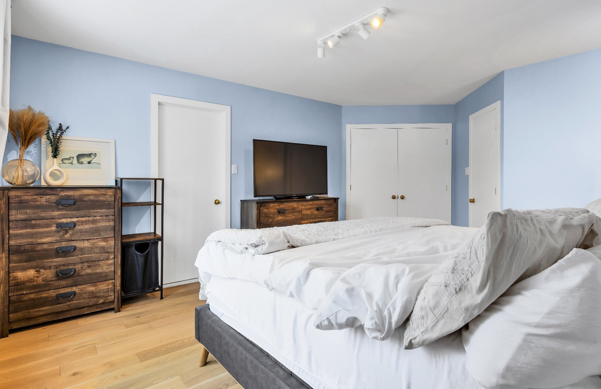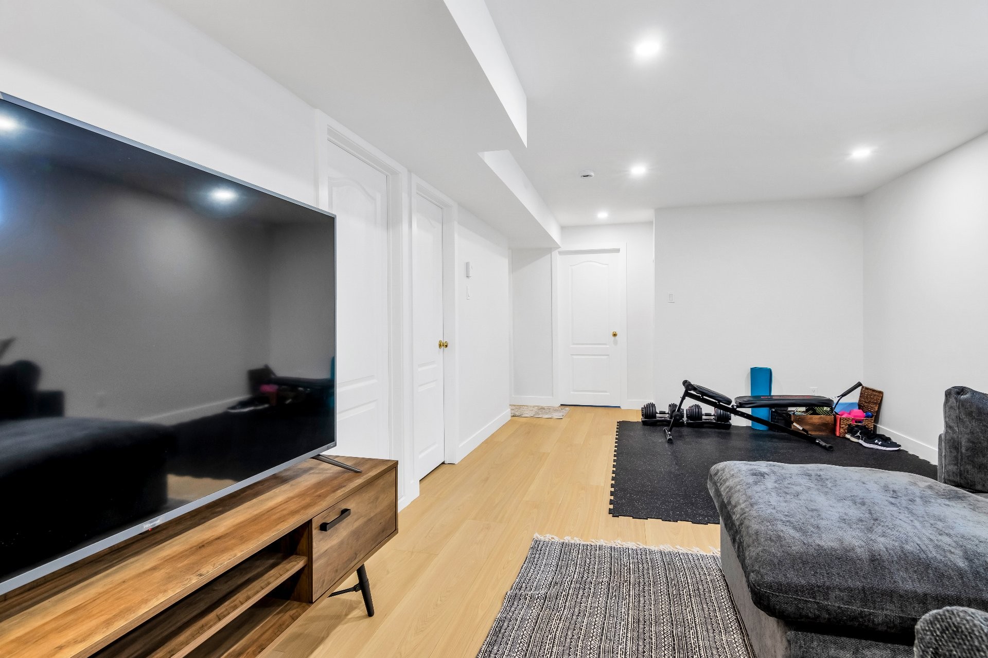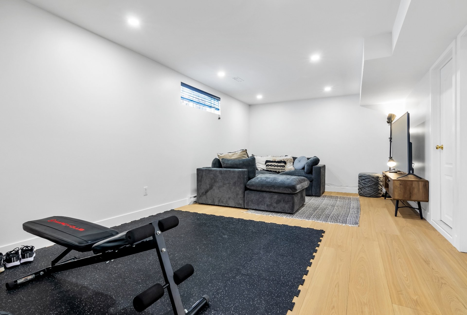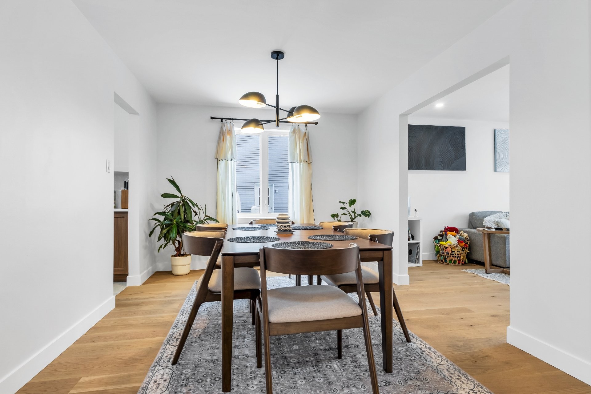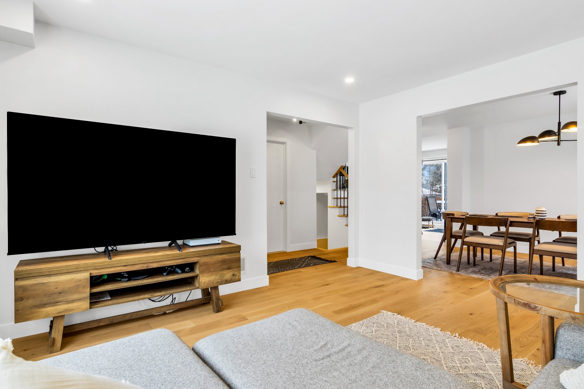 The main floor was reimagined to enhance flow and openness, with select architectural elements removed to create expansive living and dining areas -- perfect for entertaining. Flooring was entirely replaced with engineered wood on the main and upper levels, complemented by ceramic tile in the entrance, kitchen, laundry room, and bathrooms, and laminate flooring in the basement living spaces and bedrooms.
