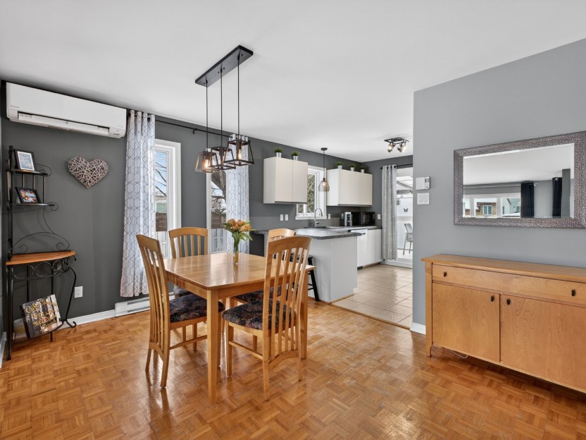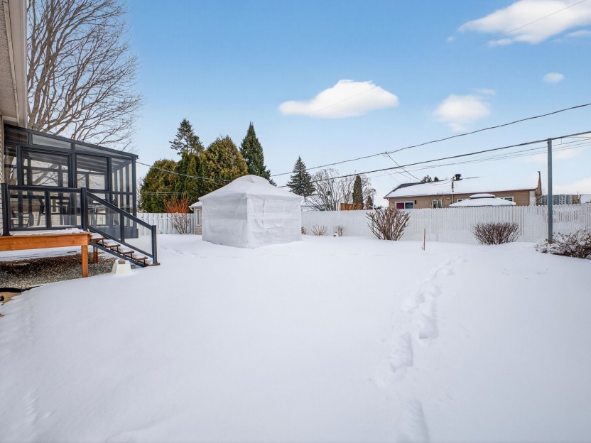 Bright, well-maintained 3+1 bed bungalow with 2 full bathrooms and garage on quiet street ideally located in Châteauguay. Newly renovated basement, including bathroom with heated floors. Perfect for hanging out with the family or watching the sports game. Roof redone in 2025, new furnace and heat pump in 2024. Spacious living room, nicely sized rooms, cute kitchen with lots of counter space. A home that's move-in ready and yet still has lots of potential for making it your own. Lovely yard, great neighbours, and quick access to main routes and the bridge--ideal for a young couple or growing family. Open house Sunday, March 1st 2026 2-4pm.