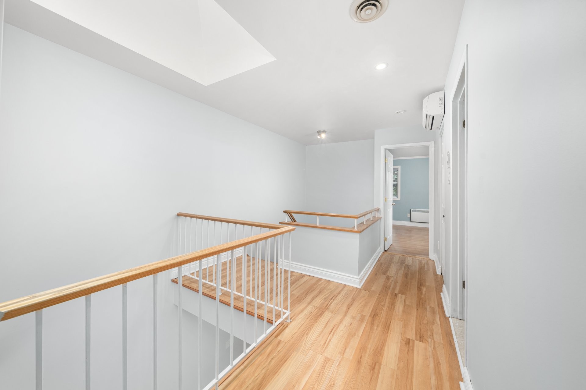 Step inside to discover a bright and inviting open-concept layout. The main floor features a spacious kitchen with a central island, generous counter space, and abundant cabinetry - ideal for cooking and entertaining. The kitchen seamlessly flows into the dining and living areas, creating a warm and connected space for gatherings. Patio doors open to a private backyard with a wooden deck, perfect for hosting BBQs or enjoying quiet outdoor moments. A powder room and direct access to the single-car garage complete the main level. Upstairs, a skylight fills the hallway with natural light. The expansive primary bedroom offers ample closet space, while two additional good-sized bedrooms provide flexibility for family, guests, or a home office. The beautifully renovated main bathroom includes a separate shower and a standalone tub - perfect for relaxing after a long day.