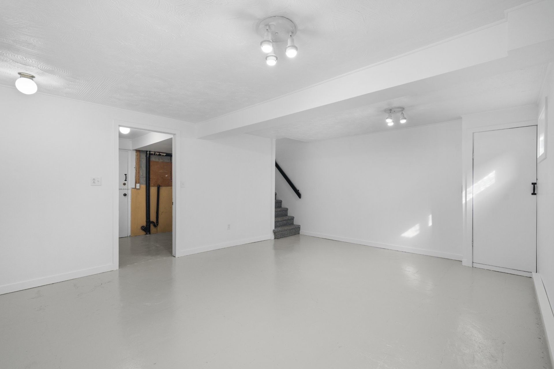 The finished basement offers a versatile family room with epoxy flooring, perfect for a home office, playroom, or extra living space. You'll also find a large laundry area with plenty of storage, as well as direct access to your private indoor parking space.