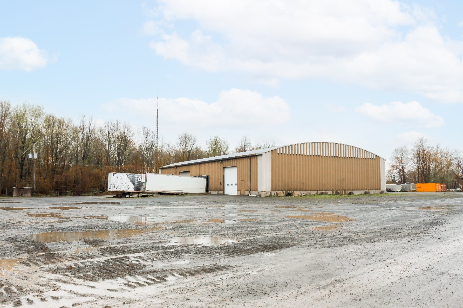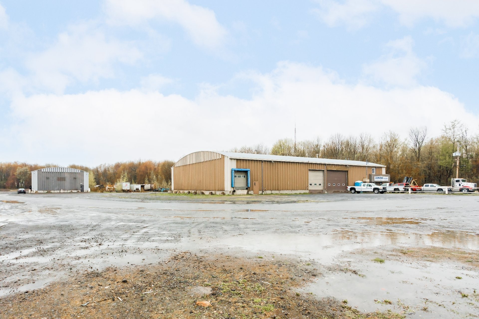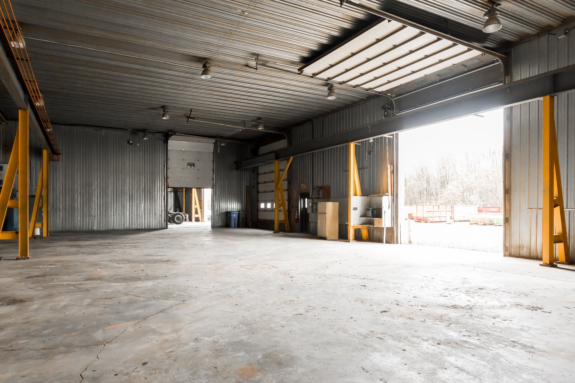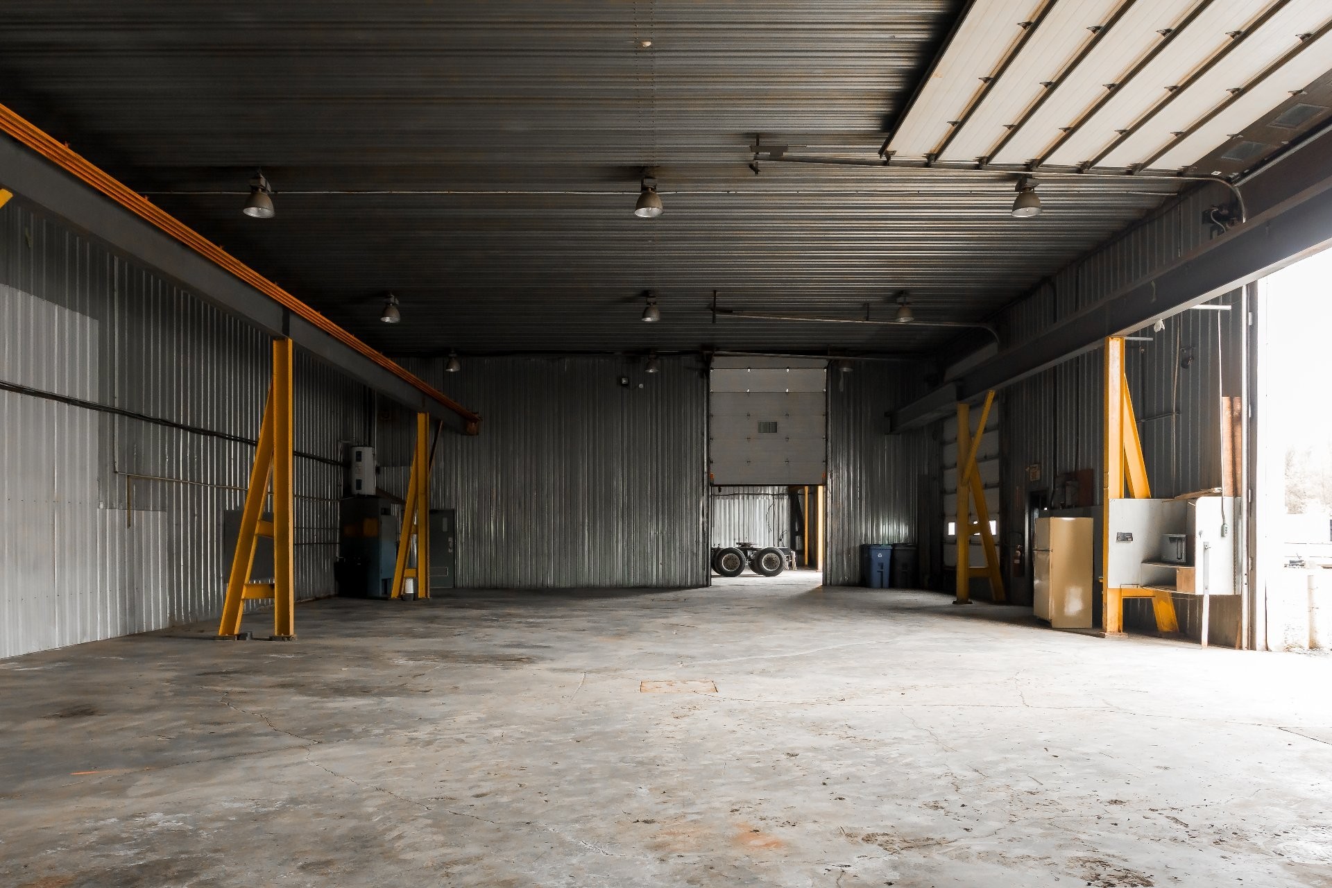 - Building #1: 10,600 sq. ft. (80 x 130 ft), 18 ft clear height. A non-load-bearing wall divides the space; the western section (approx. 4,000 sq. ft.) is currently vacant.