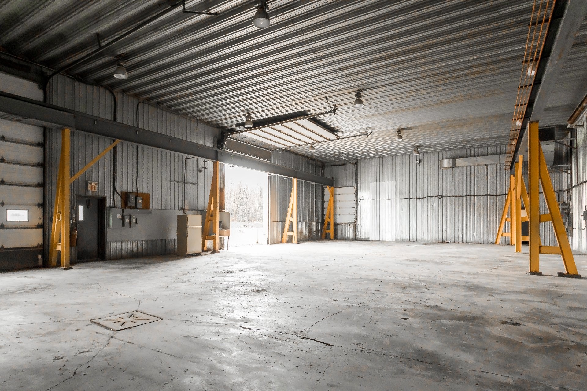 - Building #2: 7,500 sq. ft. (50 x 150 ft), 20 ft clear height, equipped with a 10-metric-ton overhead crane.