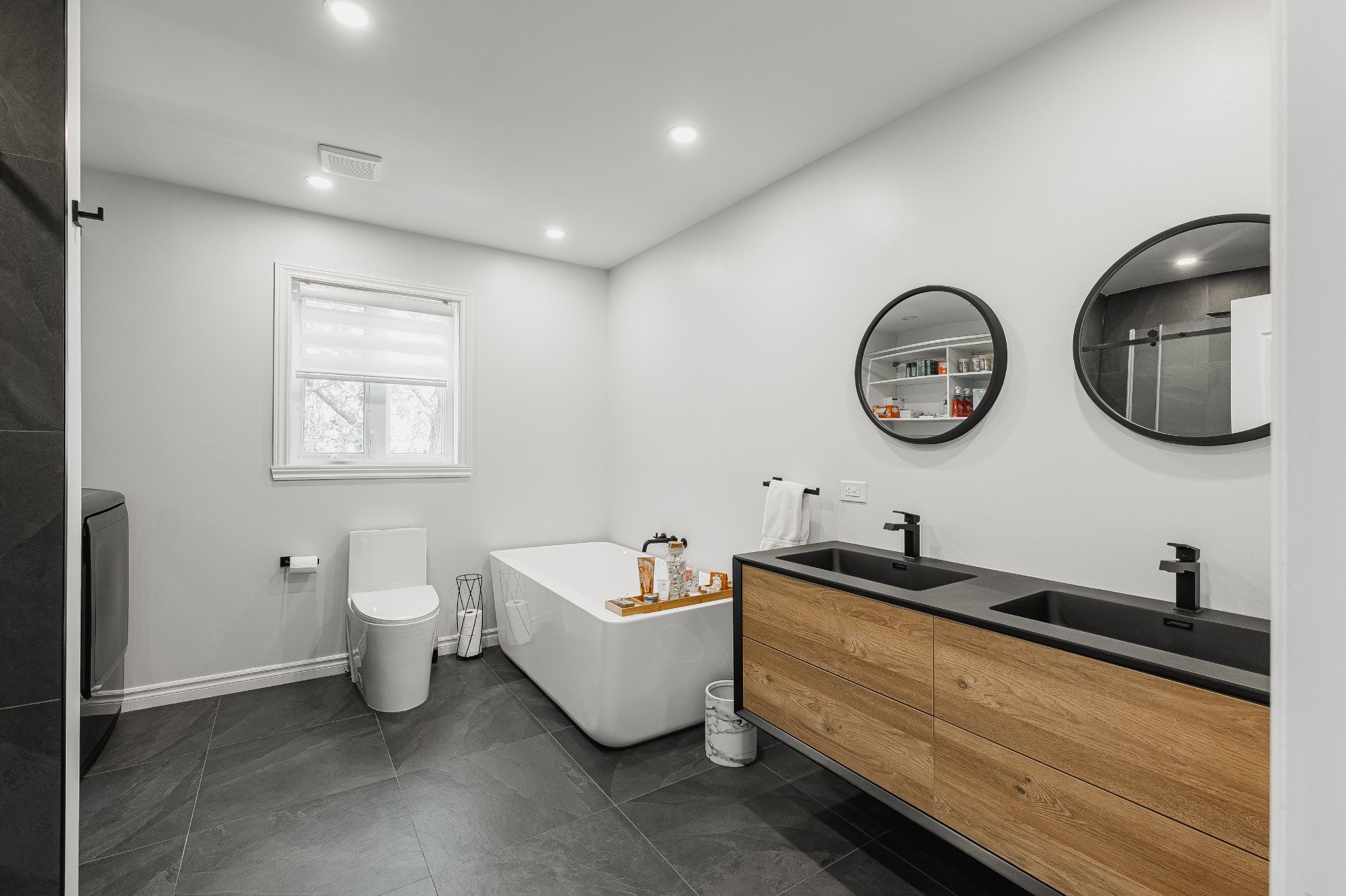 Turnkey elegance meets lush nature in this modern contemporary home in the heart of Île-Bizard. Fully renovated and move-in ready, it offers 4 large bedrooms, 3.5 fully renovated bathrooms, refinished hardwood floors, and a luxurious primary suite with walk-in and ensuite bathroom. The open-concept kitchen and living room flow seamlessly, complemented by a private dining room and a fully finished basement. Outside, enjoy a private backyard with inground pool and no rear neighbors. Steps from Golf Saint-Raphaël, The Royal Montreal, and Bois-de-l'Île-Bizard Nature Park.