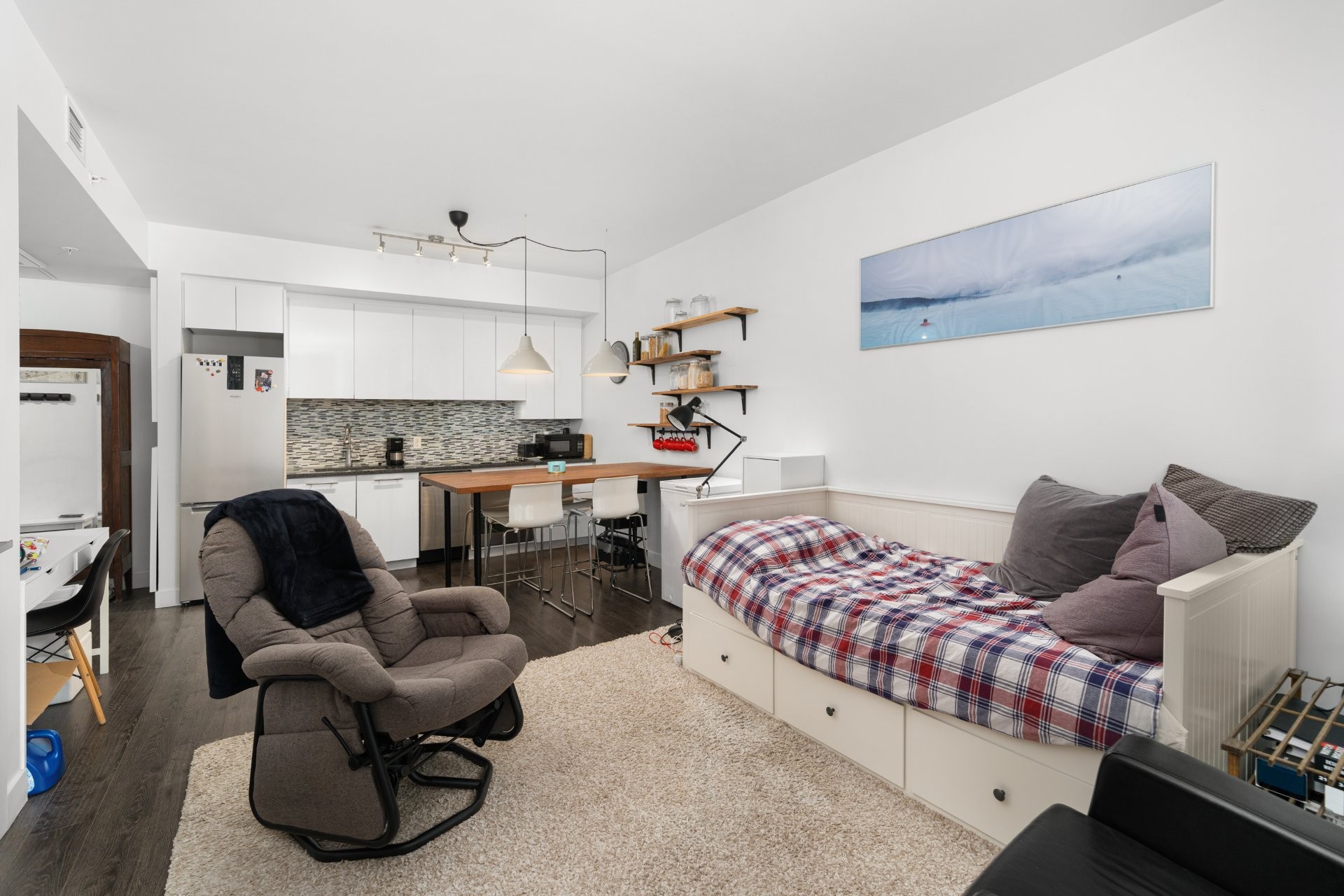 Entièrement meublé ce 2 chambres est Idéal pour un couple, ou une famille, proche des commerces, écoles, garderies, parcs, restaurants, bus...