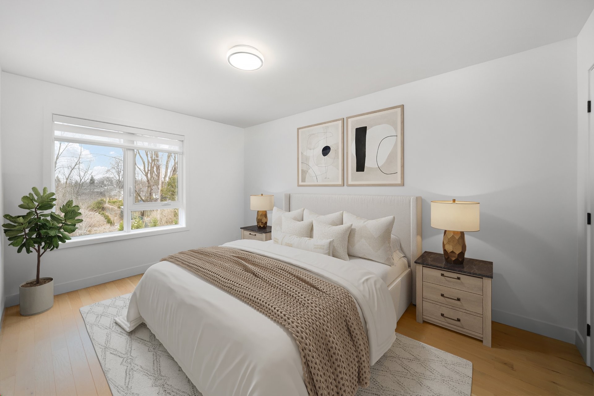 This exceptional home is loaded with premium finishes and smart home features, including upgraded glass stair railings, white oak flooring, and large-format ceramic tiles in the bathrooms and entryway. Enjoy modern conveniences such as a security system, Lutron lighting, electric blinds, integrated heating controls, Sonos speakers, a smart garage door opener, and a camera-equipped doorbell.