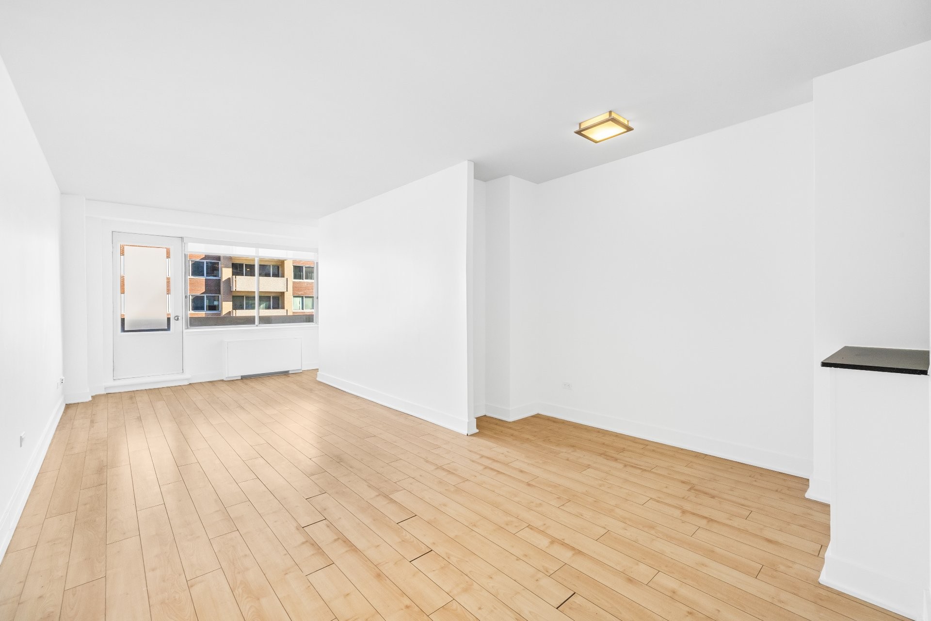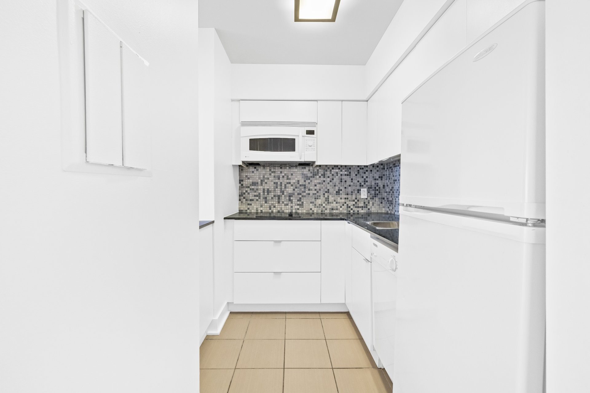 Refrigerator, dishwasher, induction cooktop, convection microwave. Building offers shared laundry facilities. Heating, hot water, and air conditioning included.