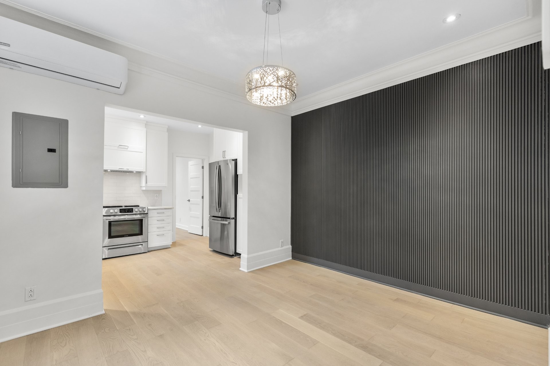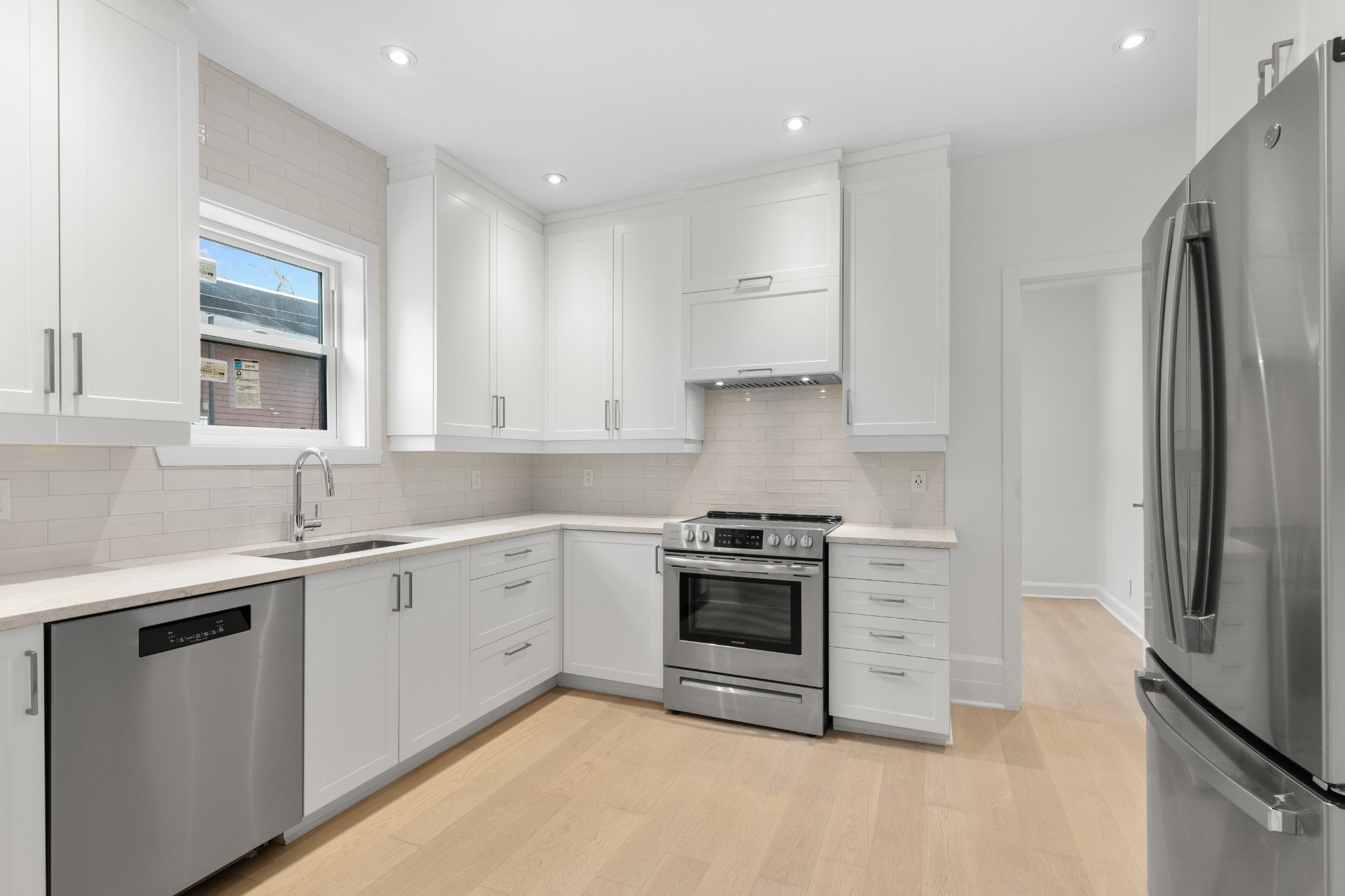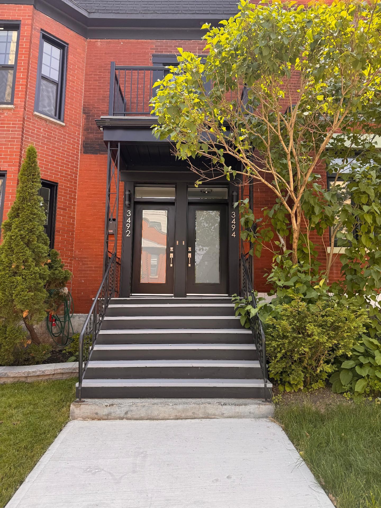 Fully renovated at a $170,600 investment, this exquisite 2nd-floor luxury condo (undivided), part of a 2-unit building, offers parking, a balcony, an outdoor terrace perfect for entertaining, and indoor storage. Located in the vibrant NDG neighborhood, the residence features soaring 9-ft ceilings, abundant natural light, classic oak floors, a beautiful custom kitchen with full-height cabinetry, quartz countertops & premium appliances, a fluted dining feature wall, ensuite powder room, and a family bathroom with free-standing tub, rain shower & Italian fixtures.
