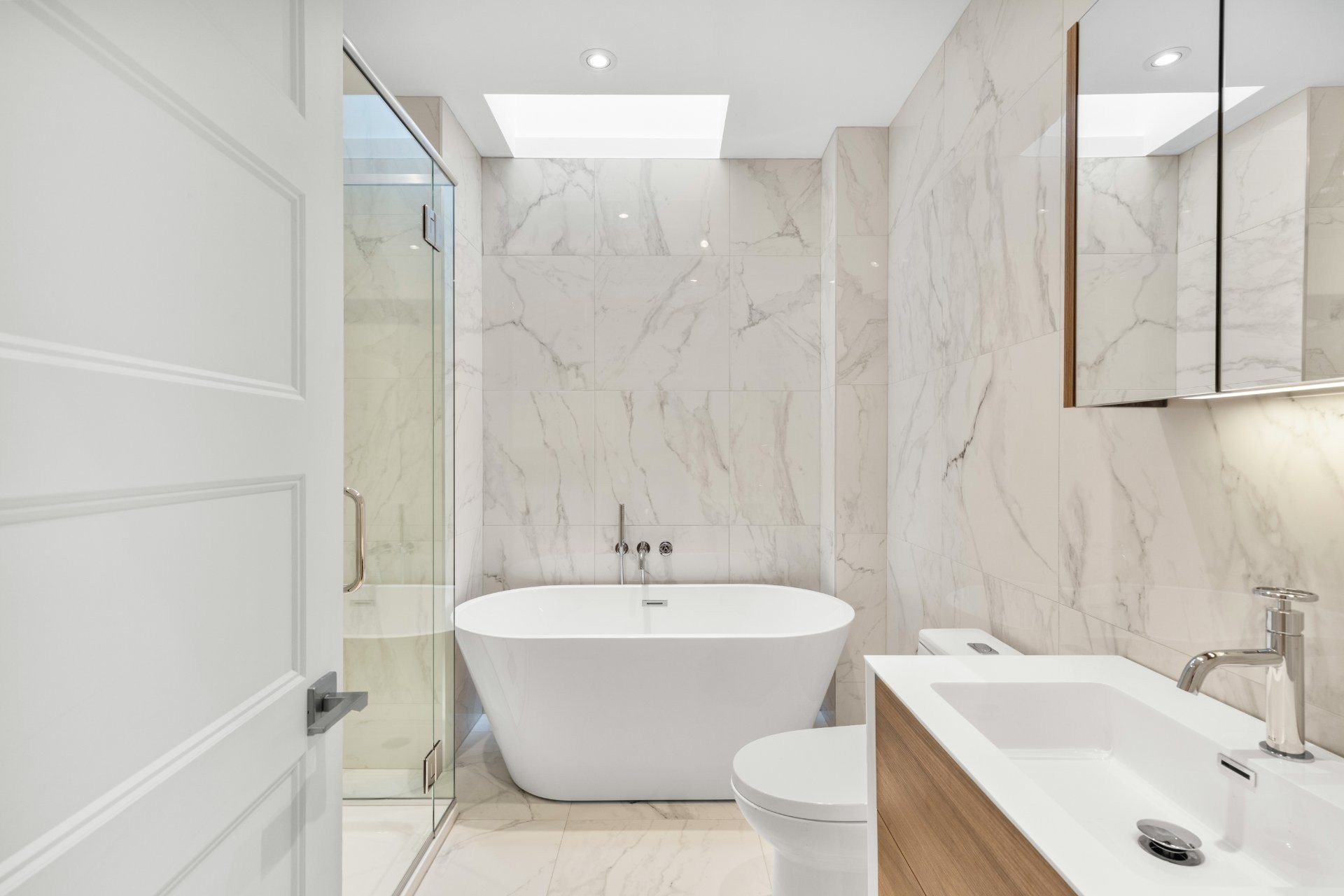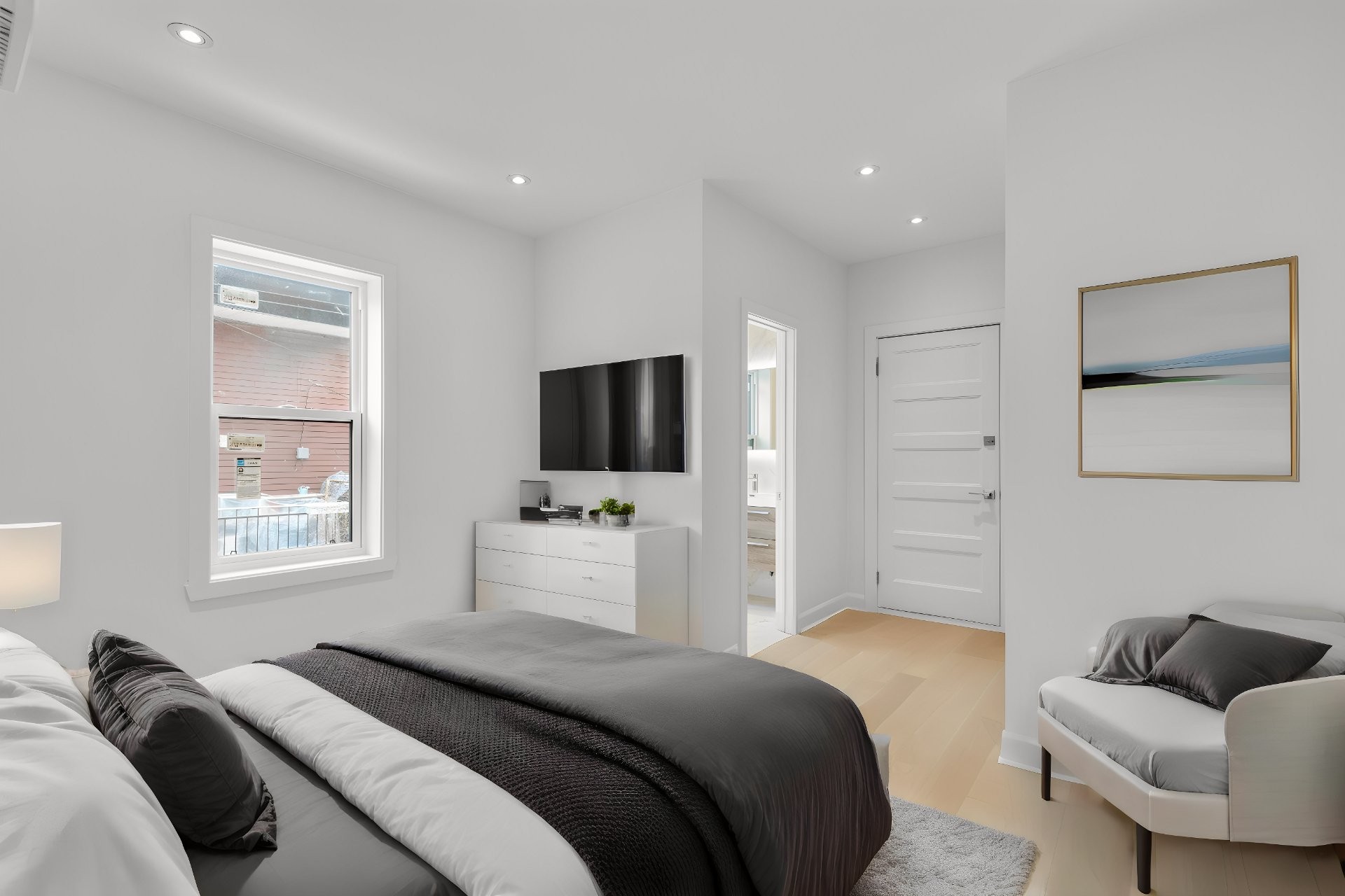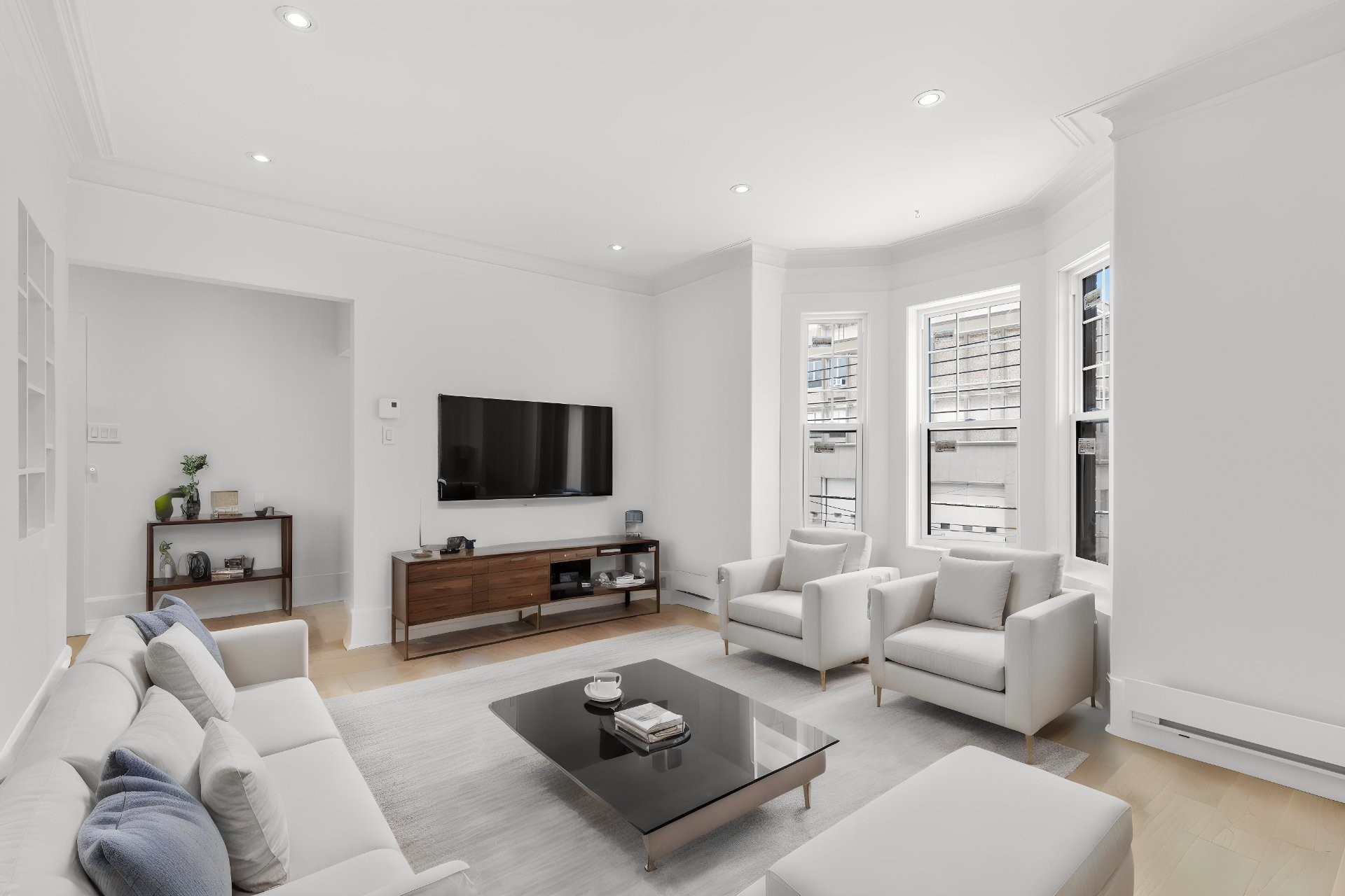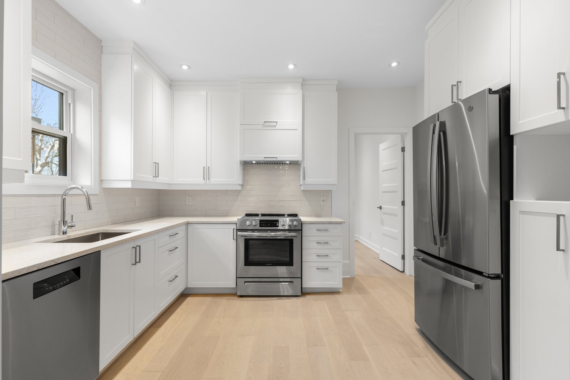 Fully renovated at a $170,600 investment, this exquisite 2nd-floor luxury condo (undivided), part of a 2-unit building, offers parking, a balcony, an outdoor terrace perfect for entertaining, and indoor storage. Located in the vibrant NDG neighborhood, the residence features soaring 9-ft ceilings, abundant natural light, classic oak floors, a beautiful custom kitchen with full-height cabinetry, quartz countertops & premium appliances, a fluted dining feature wall, ensuite powder room, and a family bathroom with free-standing tub, rain shower & Italian fixtures.