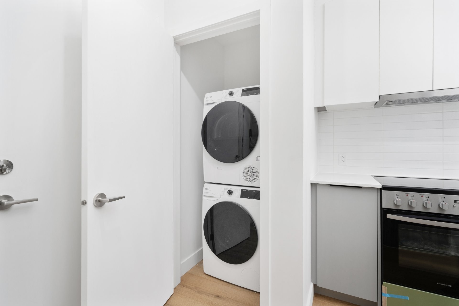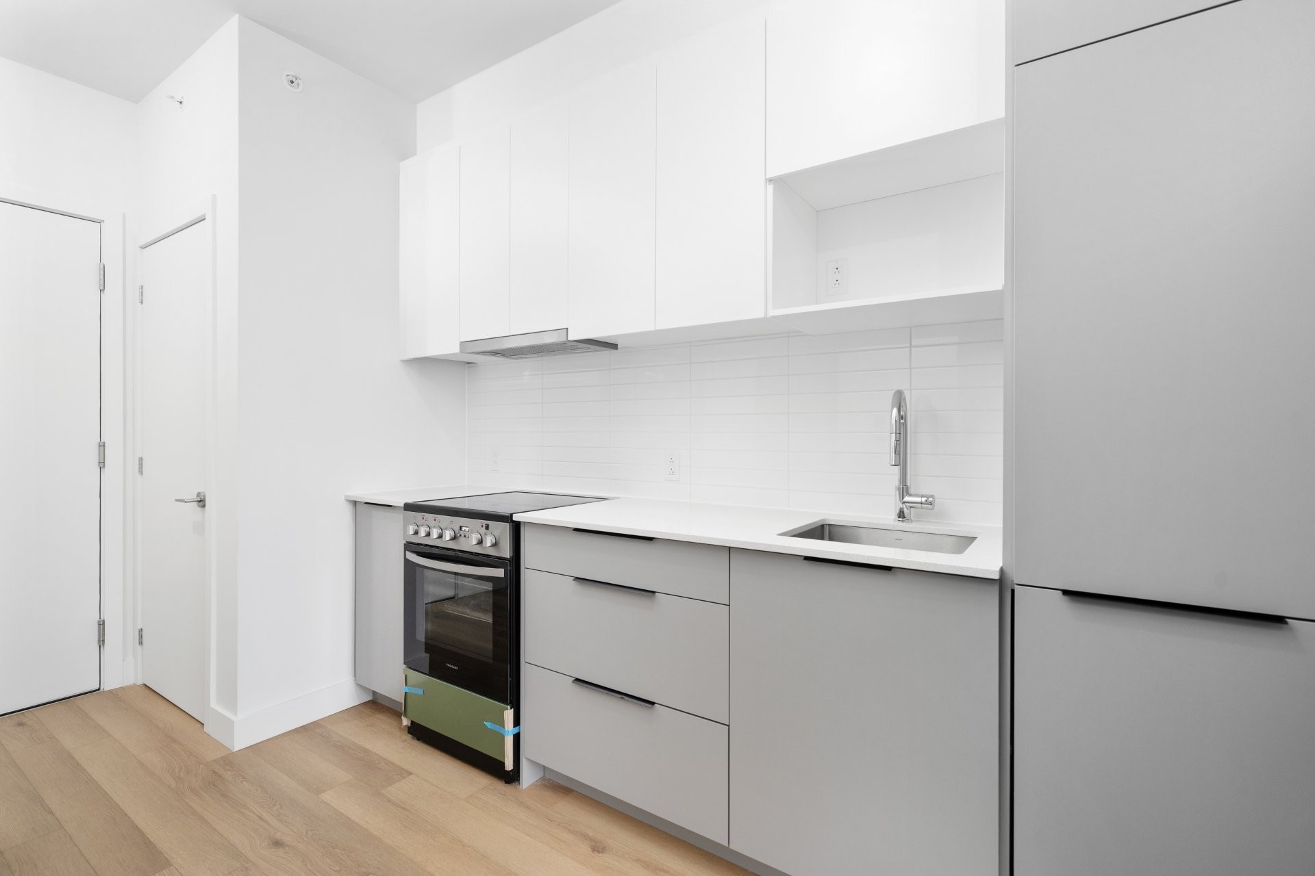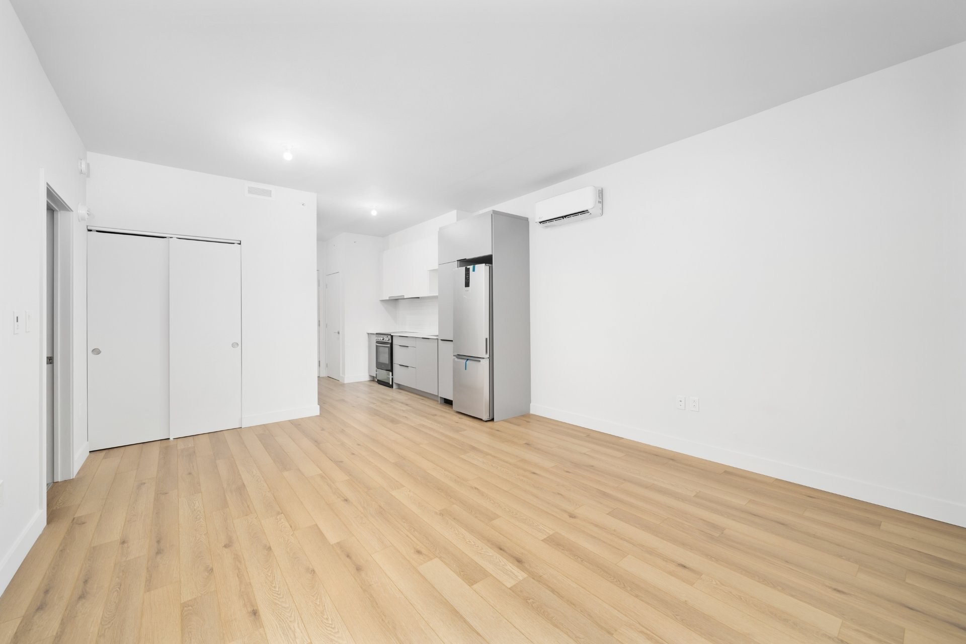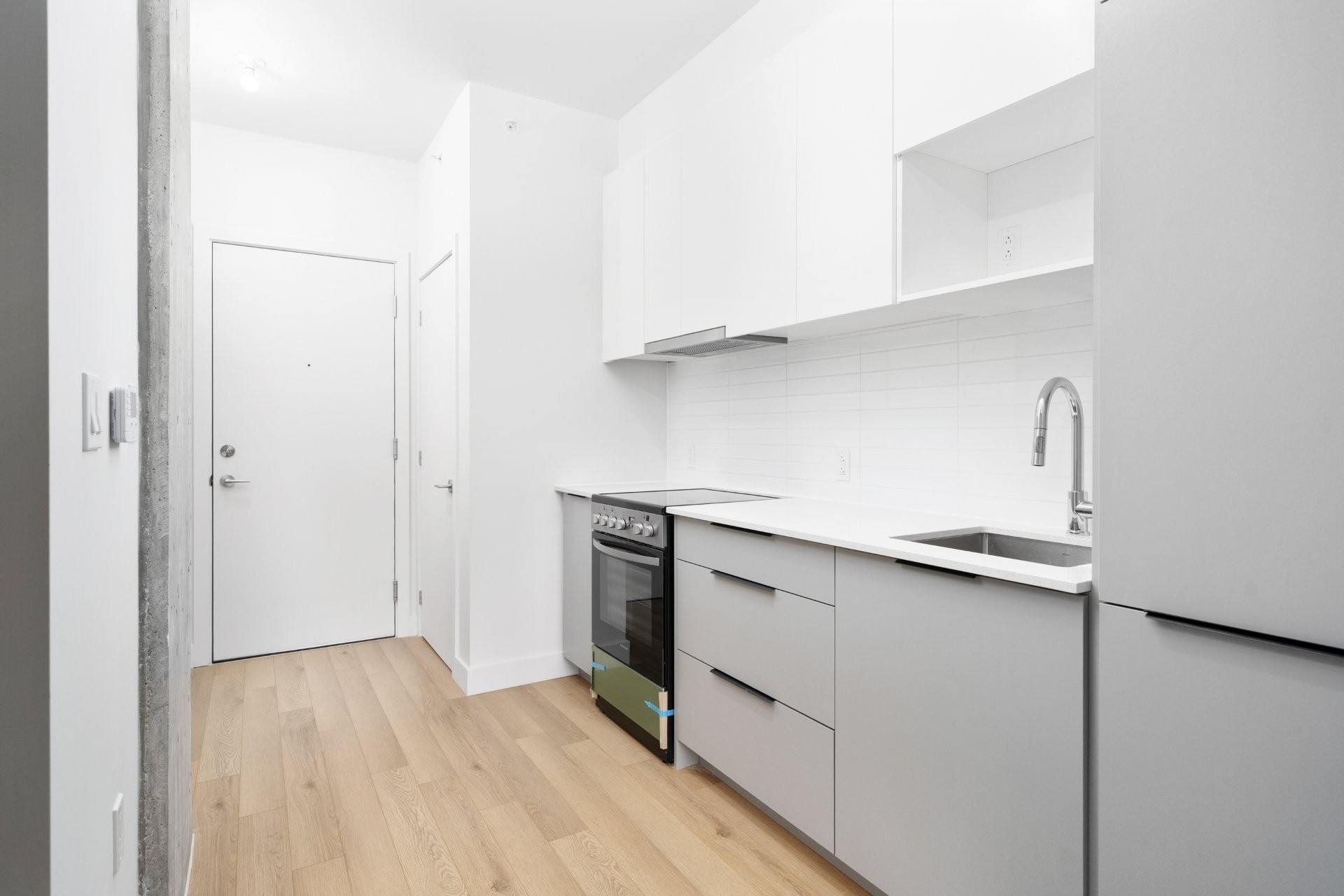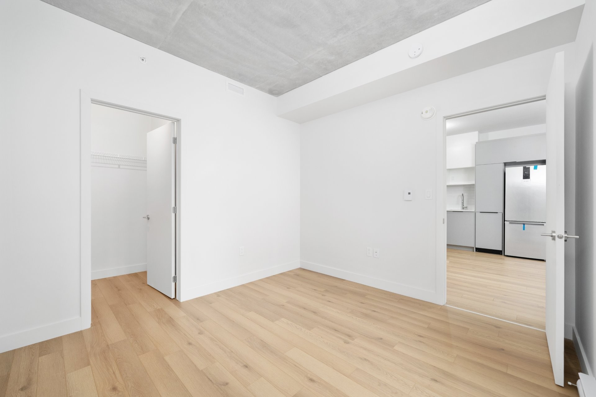 July 1st occupancy! One-bedroom condo featuring a sleek open-concept kitchen and living area. Includes full appliances and window coverings for added privacy. Enjoy year-round comfort with a wall-mounted A/C unit. The secure building offers elevator access, and this unit comes with one indoor parking space and a locker. Access to amenities, including a fully equipped gym and a pool (available in 2026).