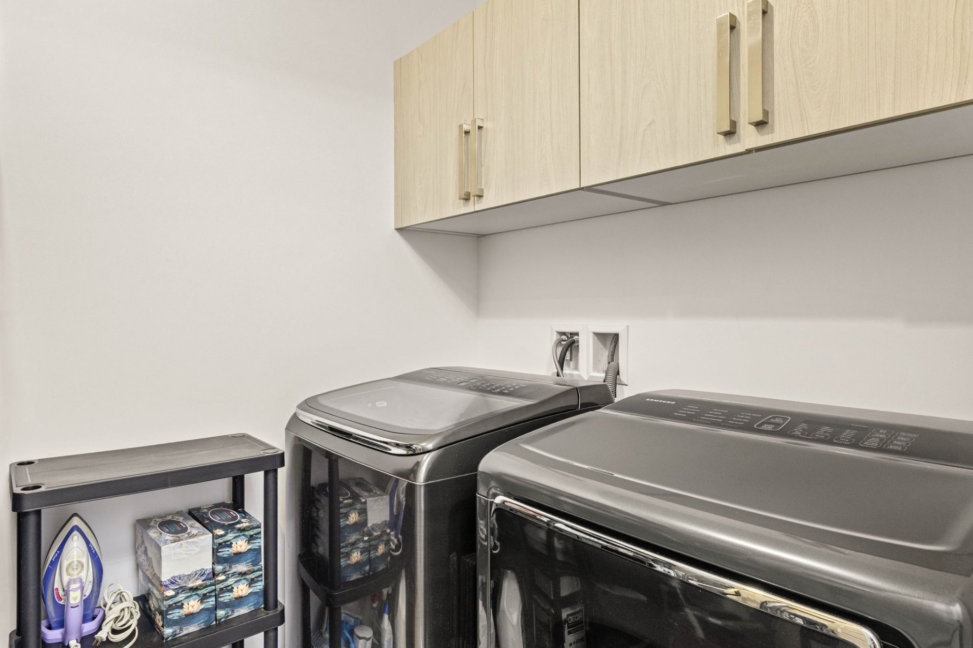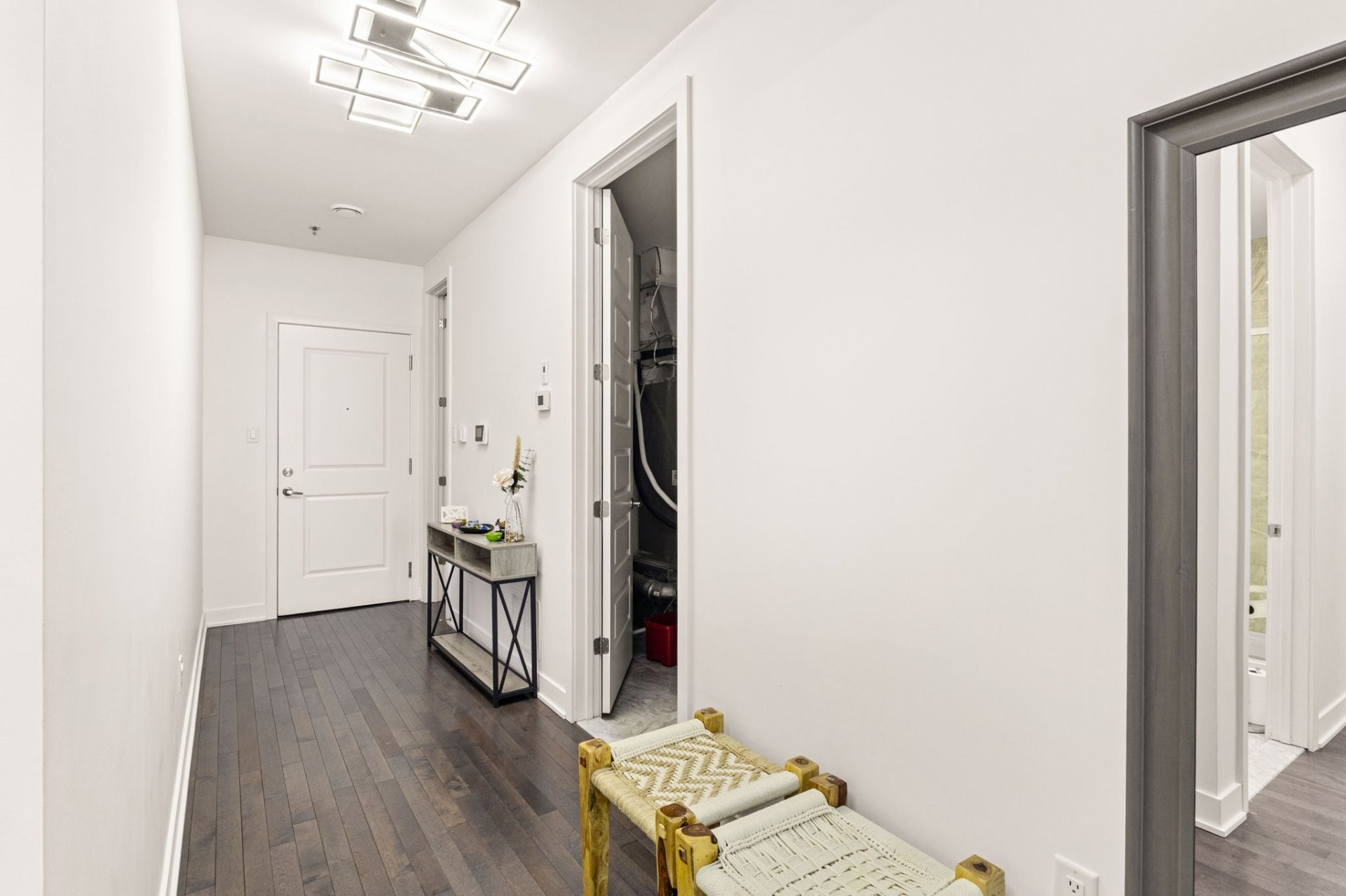 Fridge, stove, washer, dryer, dishwasher, all blinds (powered from remote and cellular app), all light fixtures, air exchanger, heat pump (A/C and heating), 4 parking spaces (indoor) and 5 storage lockers (indoor)