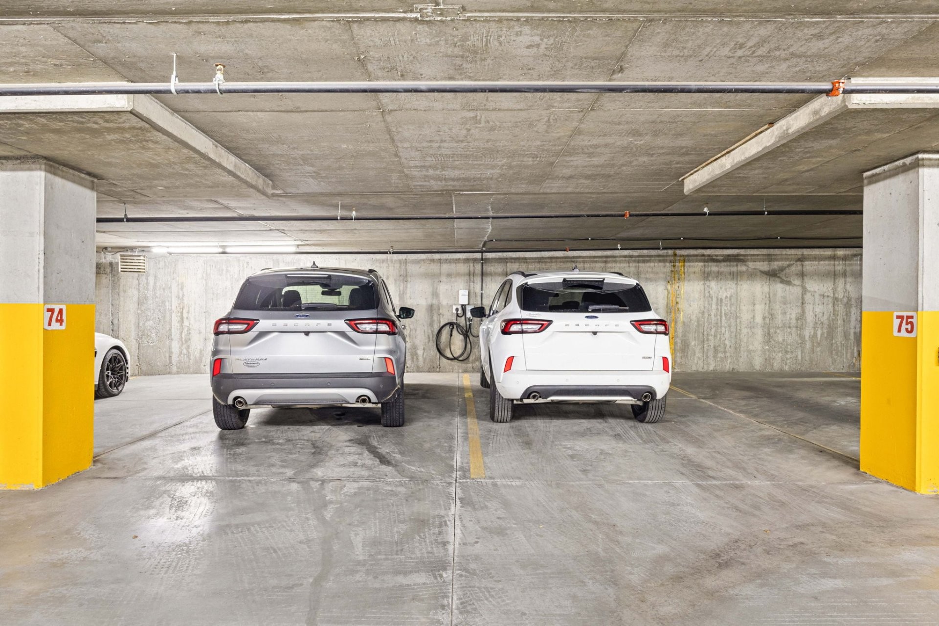 Discover this 1577 sq. ft. corner unit that combines luxury, space, and investment potential. This bright, open-concept condo features 3 bedrooms, 2 full bathrooms with spacious living and dining areas ideal for entertaining or relaxing. Enjoy your morning coffee on the private balcony overlooking the neighborhood. The condo's ensuite bathroom, large rooms, and abundant natural light create an inviting and comfortable atmosphere. Exceptional for its convenience, this unit includes 4 indoor parking spaces and 5 private storage lockers, offering rare revenue potential by renting out the extras.