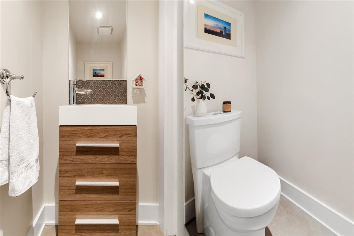 Functionality is front and center, with smart storage solutions throughout, including a pantry cleverly tucked beneath the staircase, a dedicated laundry room, and two bathrooms: a convenient powder room on the main floor, and a full bathroom on the bedroom level upstairs.