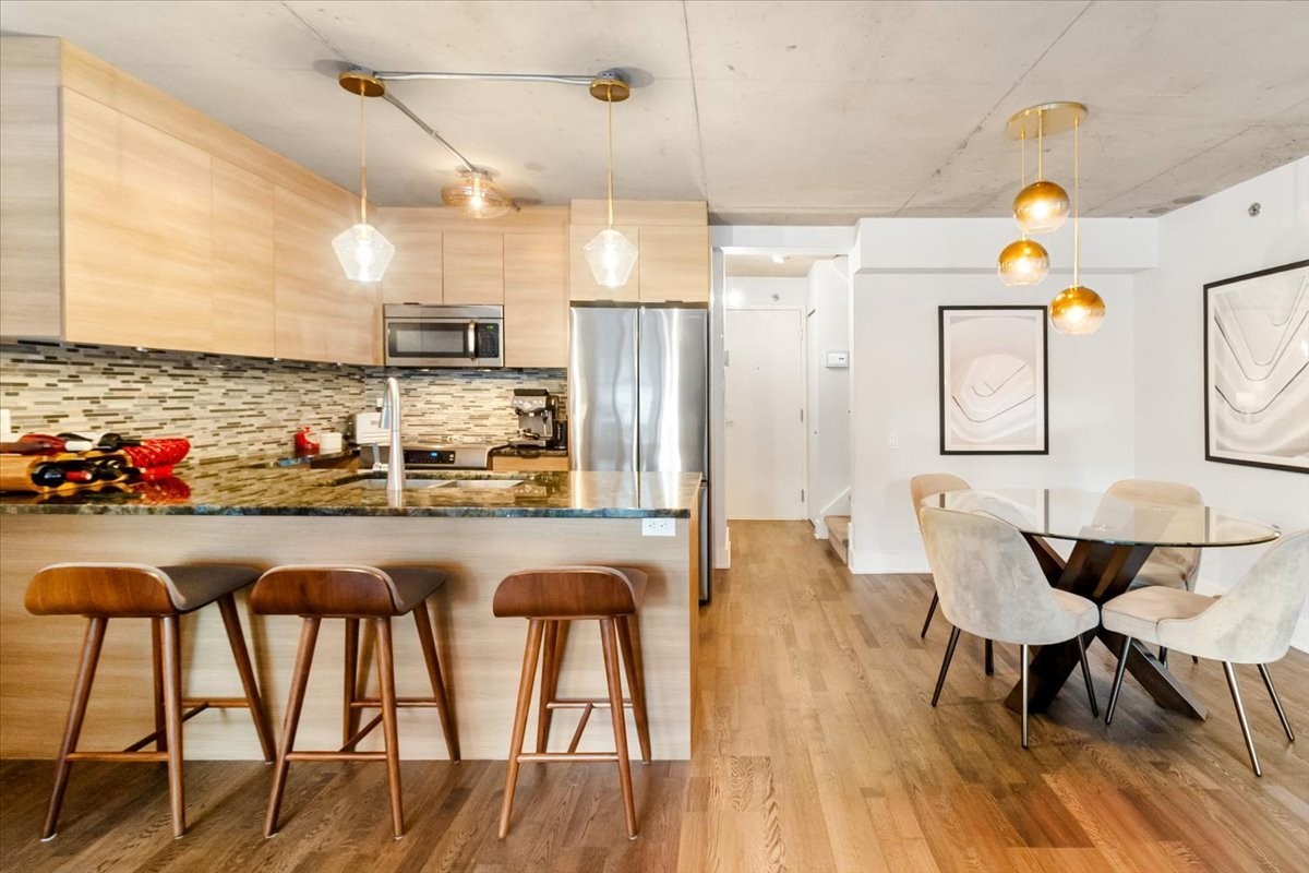 Designed for modern living, the open-concept main floor features high ceilings, large windows, and an abundance of natural light. Step out onto your private terrace -- perfect for entertaining, relaxing, or enjoying an urban garden. Residents also have access to a common rooftop terrace, where you can unwind or host friends while taking in expansive views of the Montreal skyline.