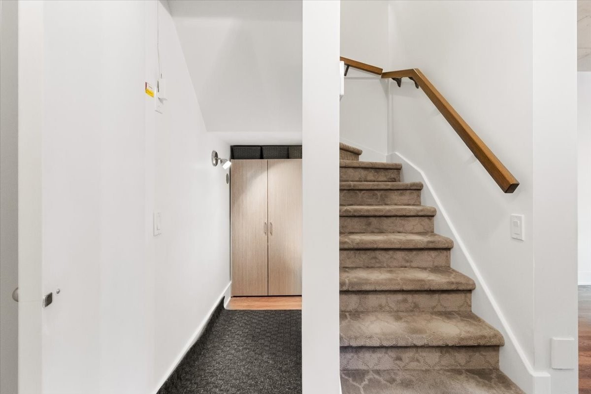 Functionality is front and center, with smart storage solutions throughout, including a pantry cleverly tucked beneath the staircase, a dedicated laundry room, and two bathrooms: a convenient powder room on the main floor, and a full bathroom on the bedroom level upstairs.
