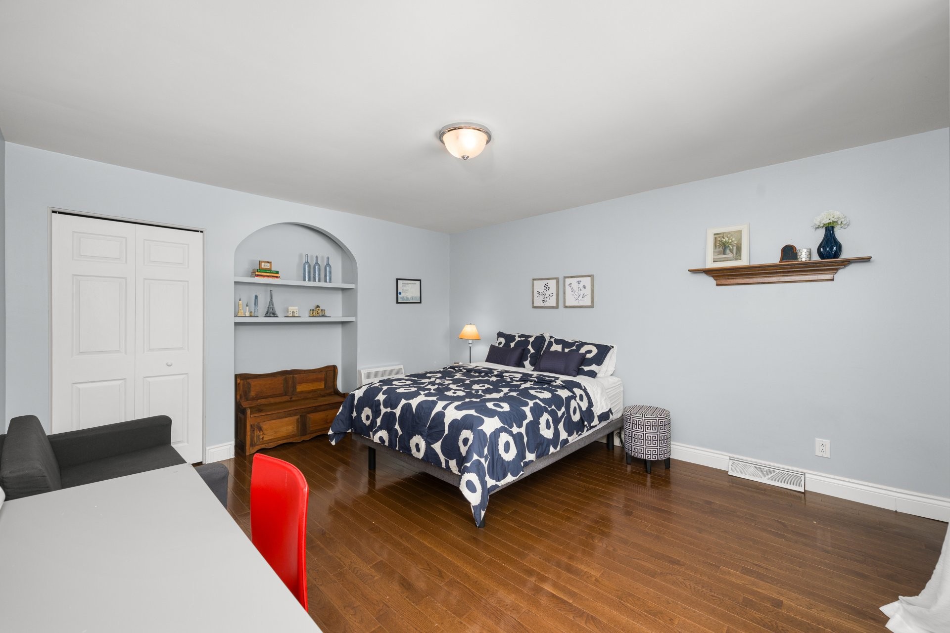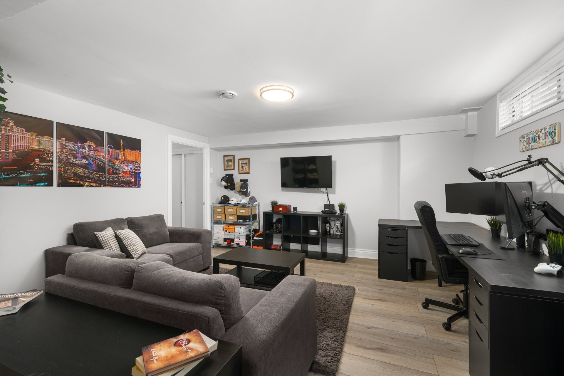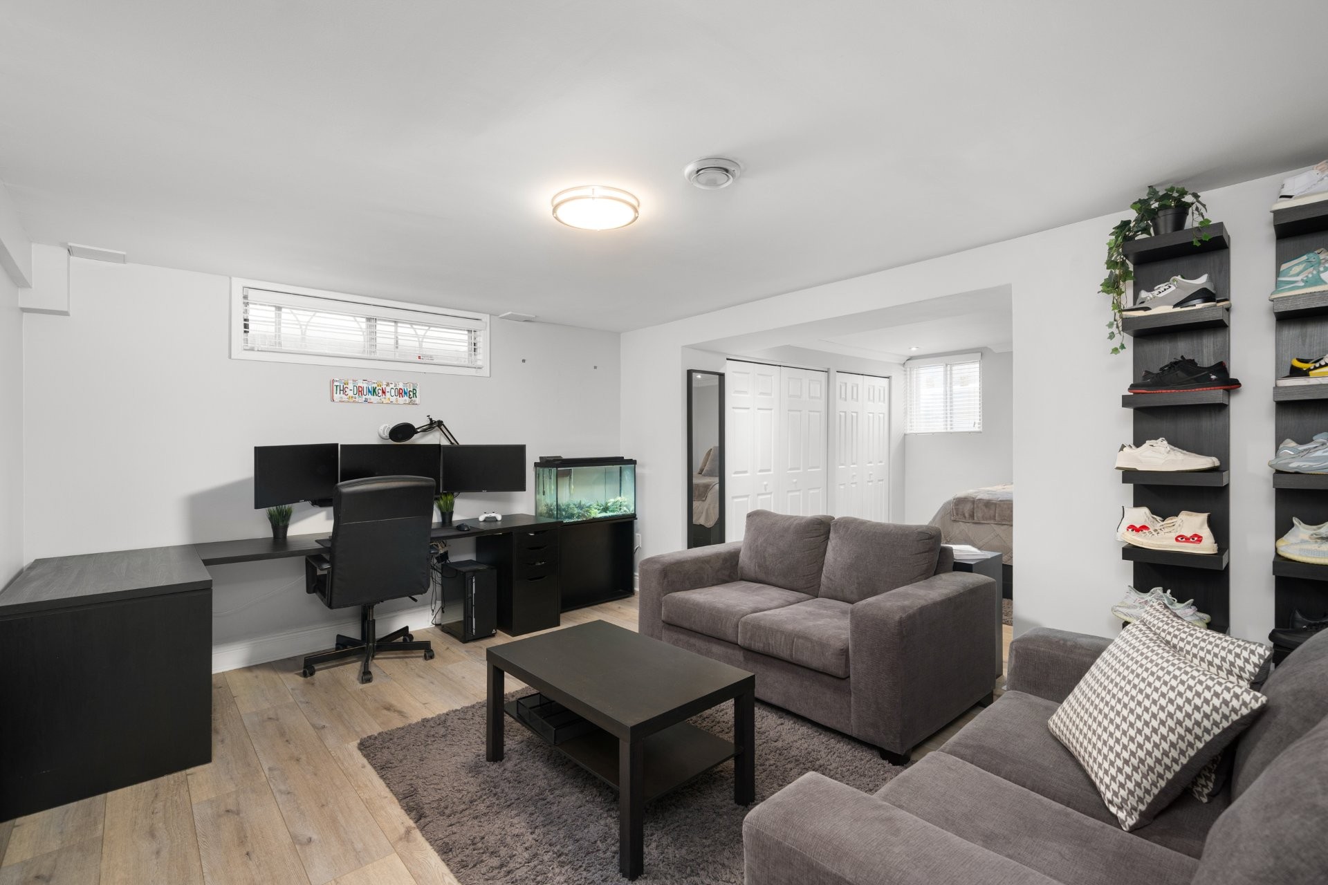 The finished basement adds excellent versatility, featuring a playroom with bar area, a large bedroom with adjoining den (convertible to an additional bedroom), a full bathroom, and abundant storage.