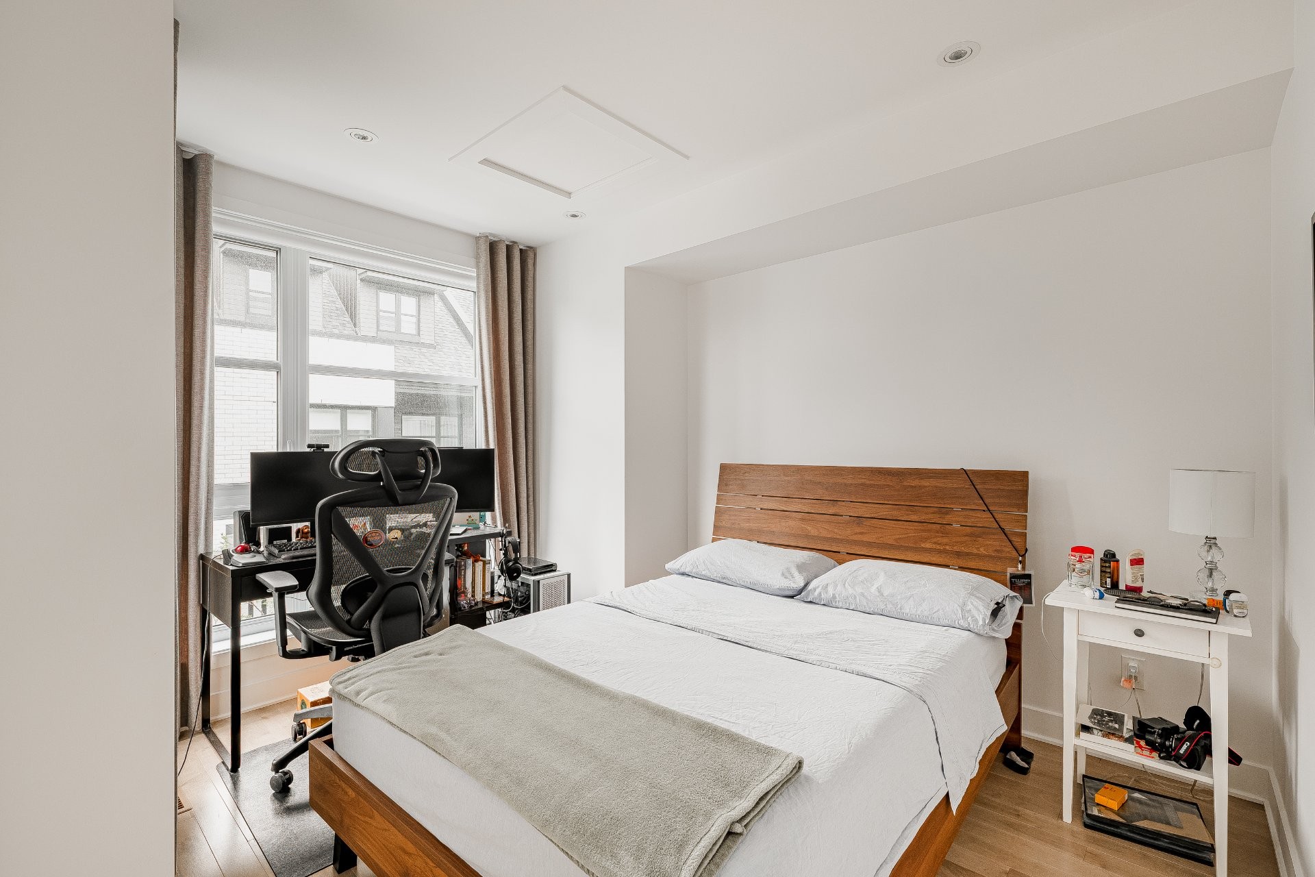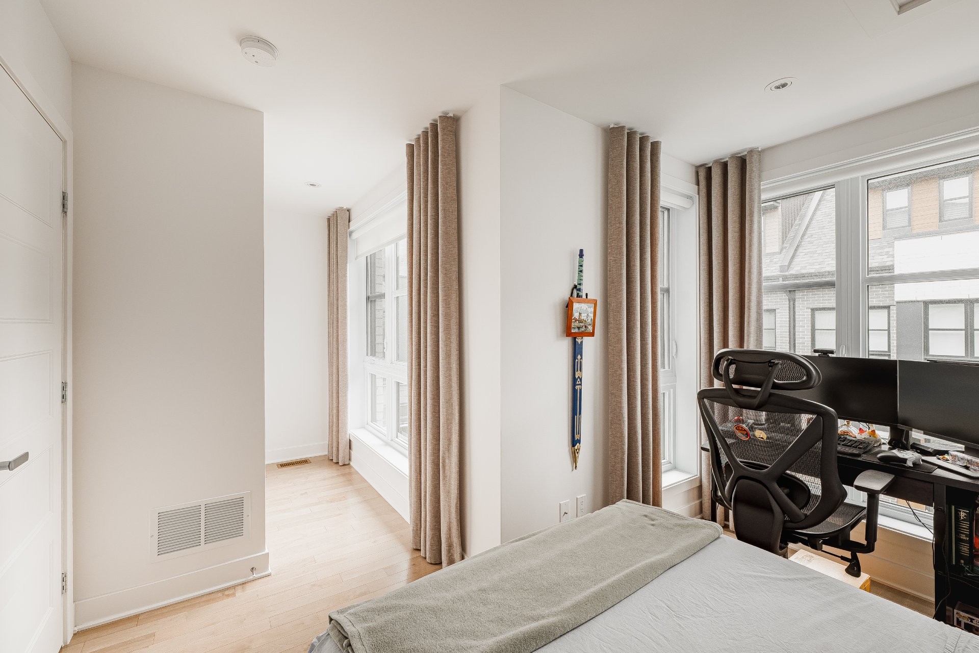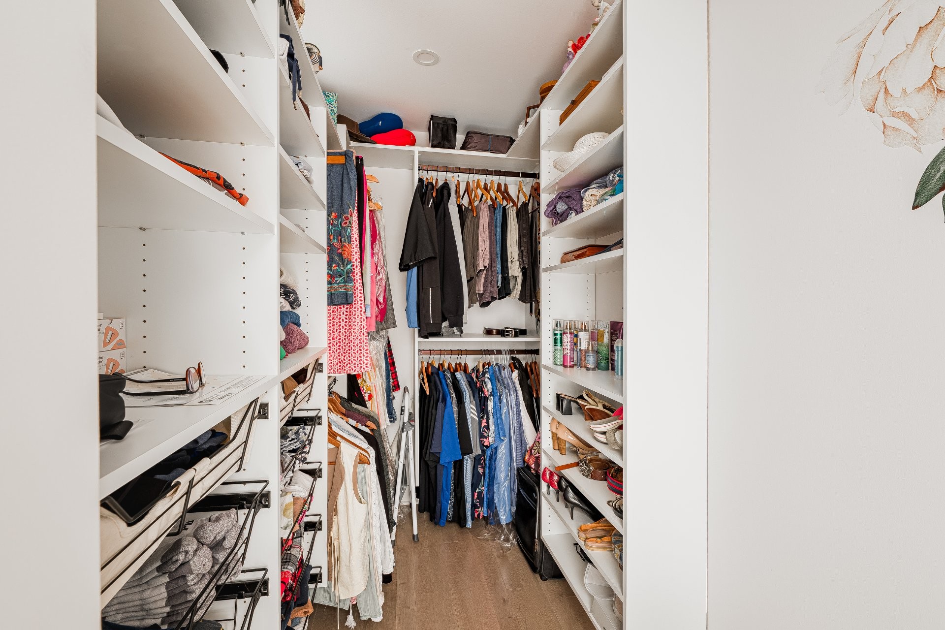 However, the mezzanine can and is often converted the primary bedroom area. Then you can create the primary suite with ensuite and walk in closet to your taste. Other uses are as a gym, executive office, or family room, which is it's current use.