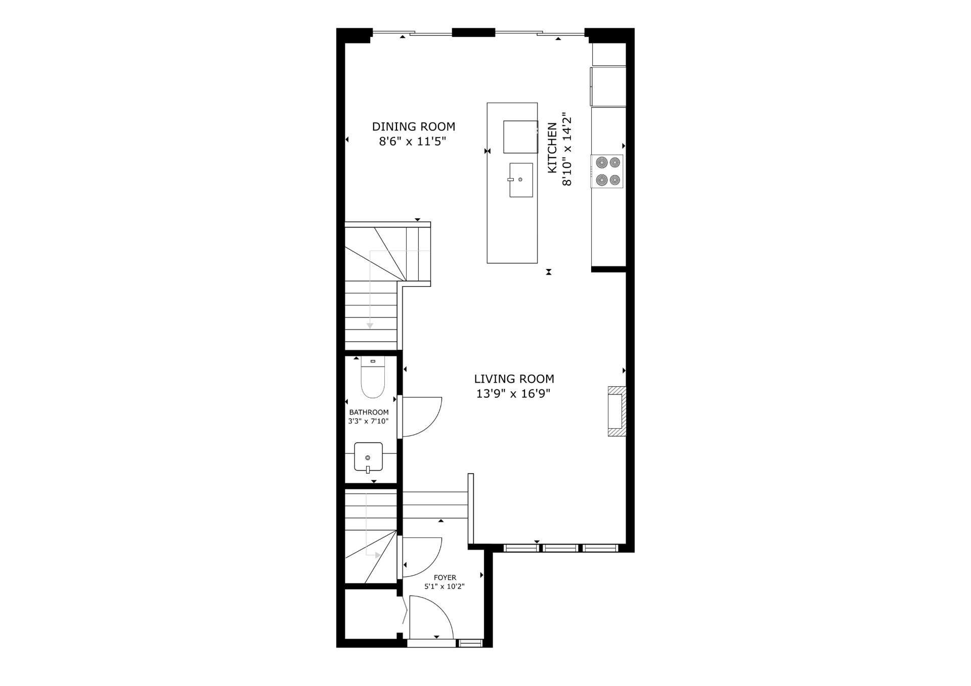 Basement: Multifunctional room with California closet, for your jackets and shoes. Make this area what you need: either a den, office, gym or optional bedroom.
