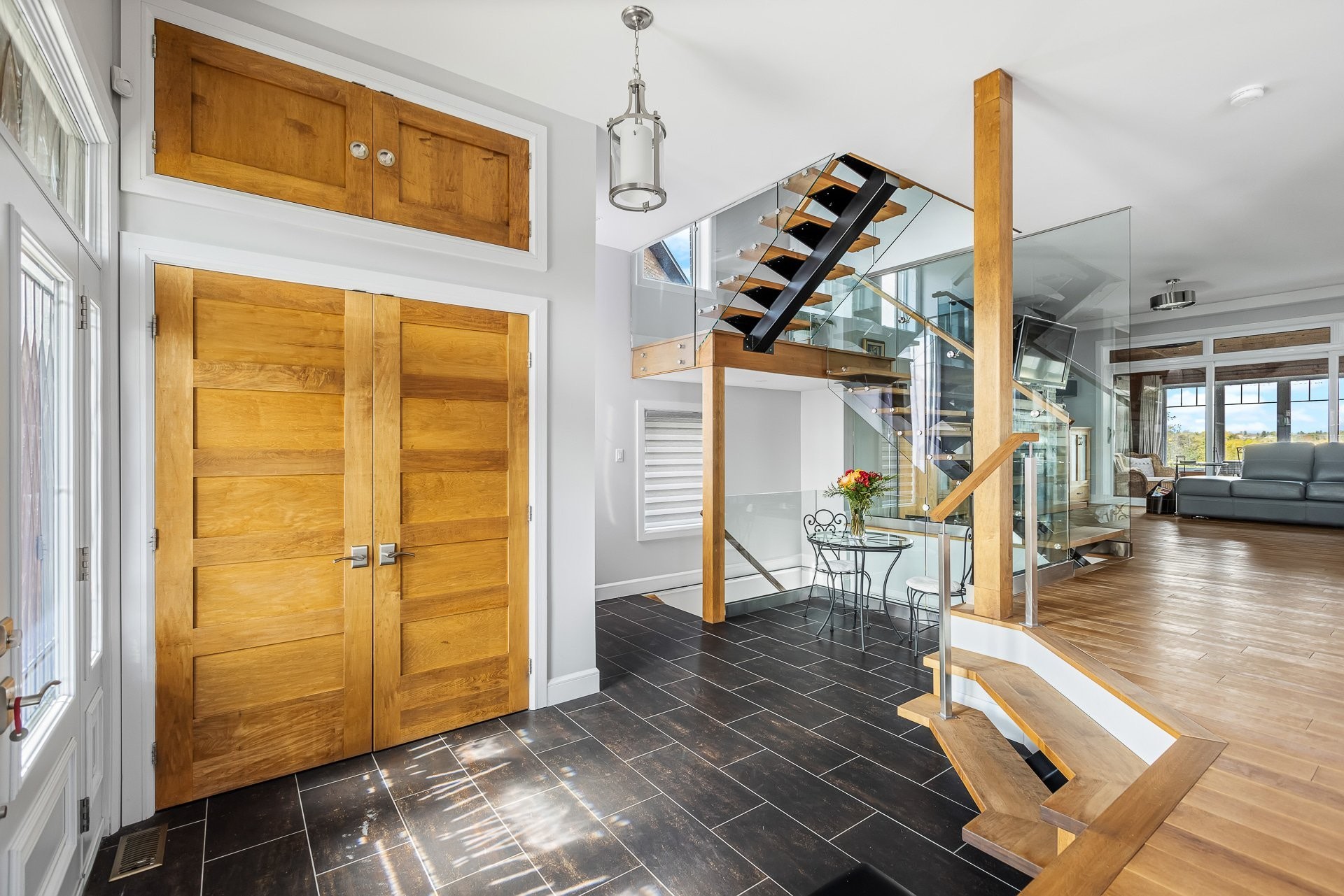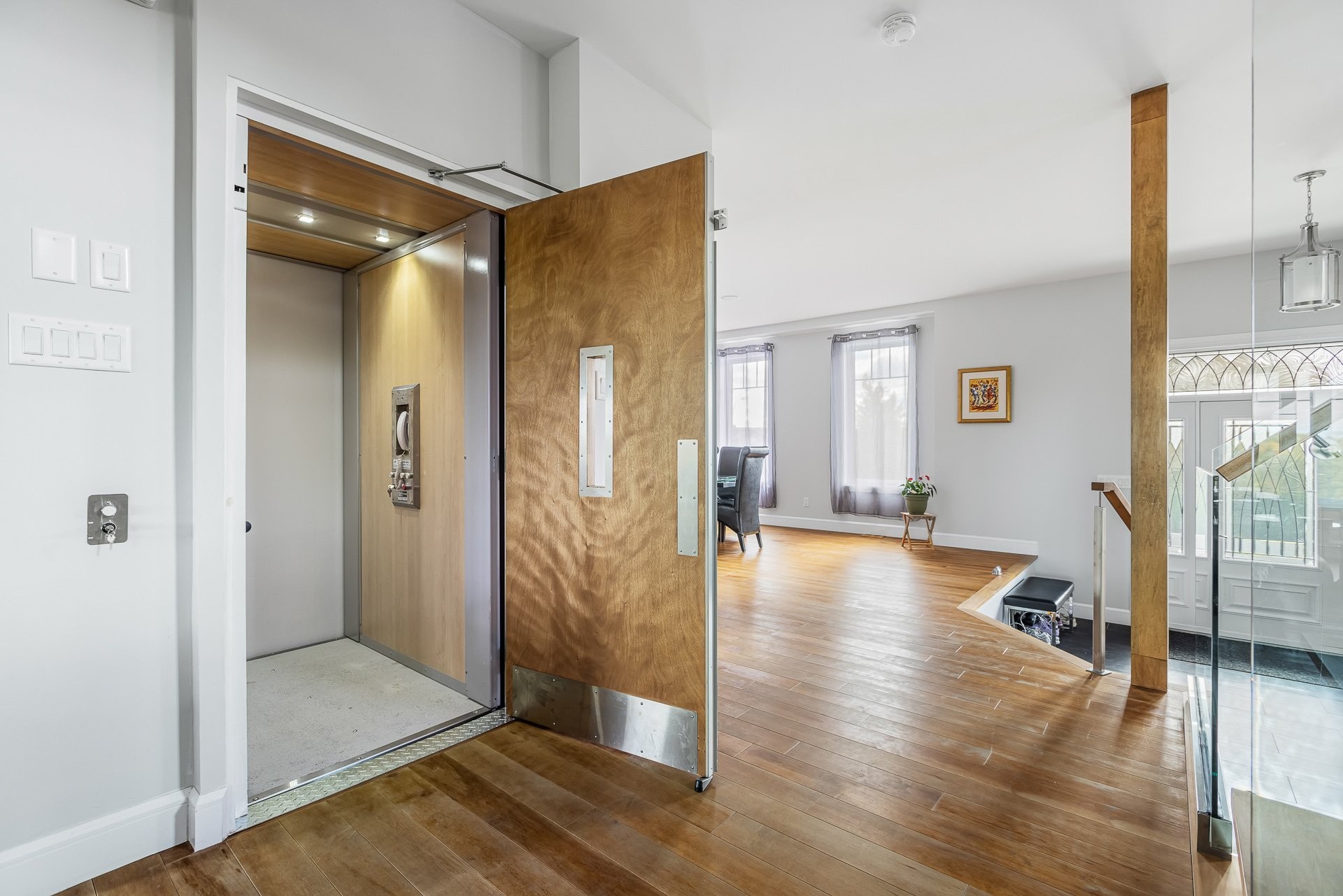 Upon entering, a spacious foyer welcomes you with direct access to the elevator, facilitating your movement through the residence's various levels. The open living area, bathed in natural light, captivates with its warm ambiance and high-end finishes.