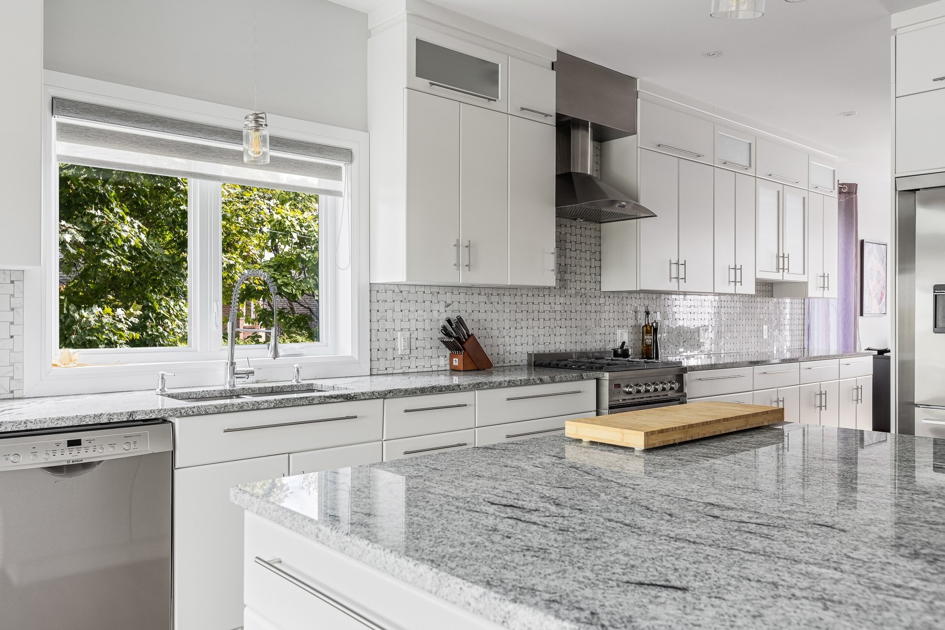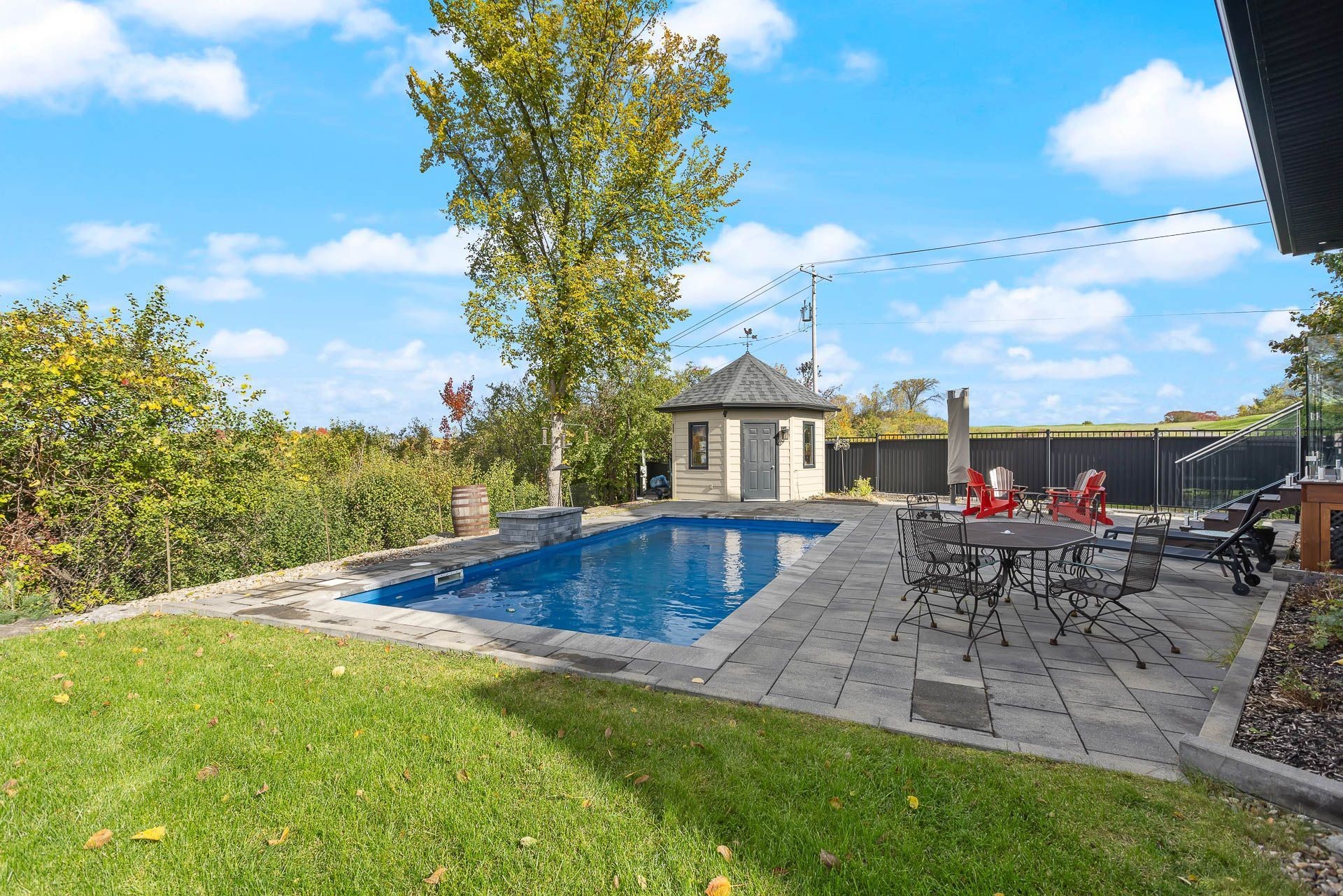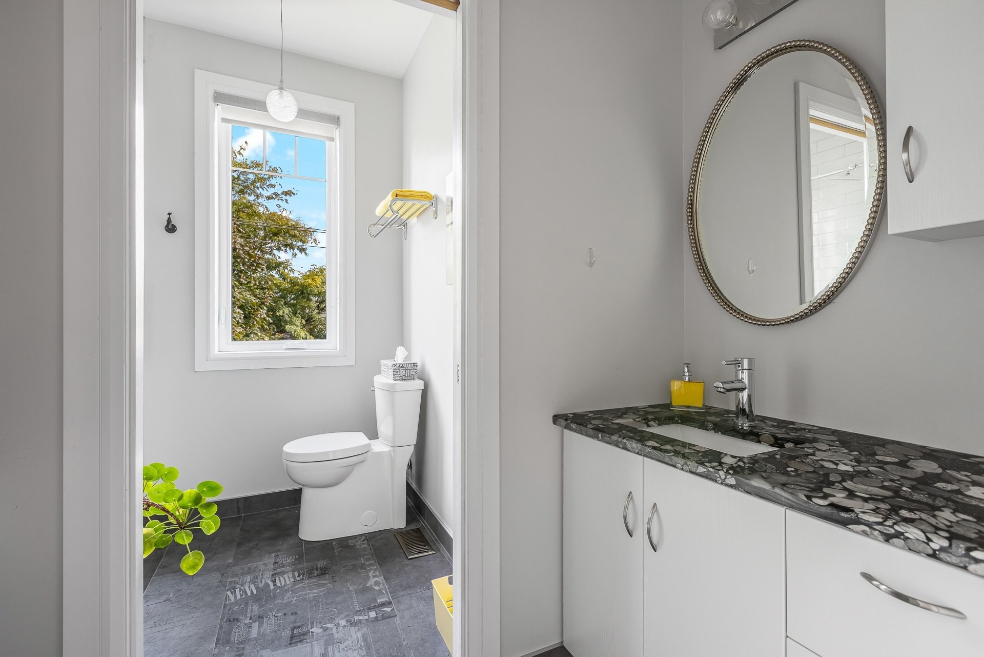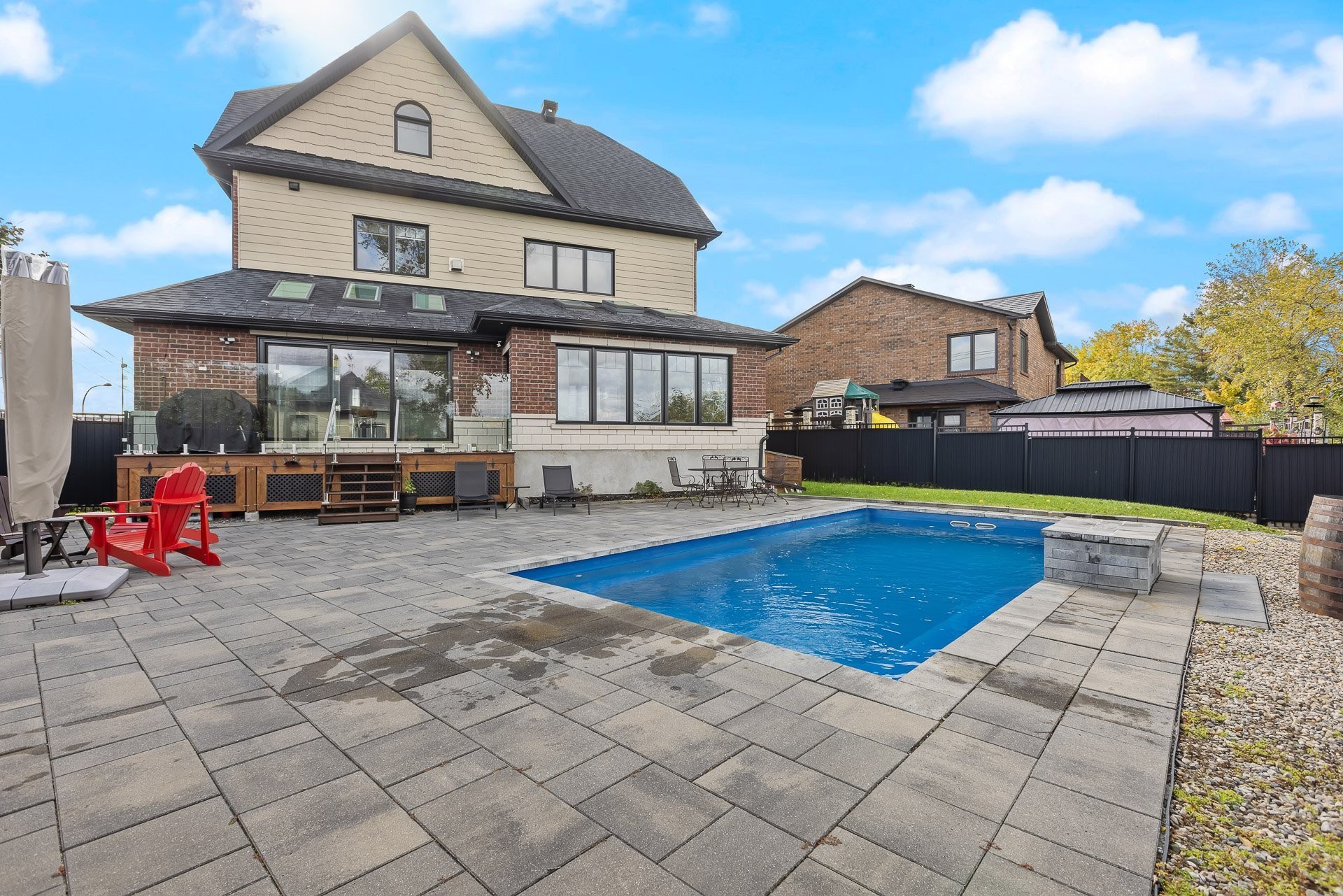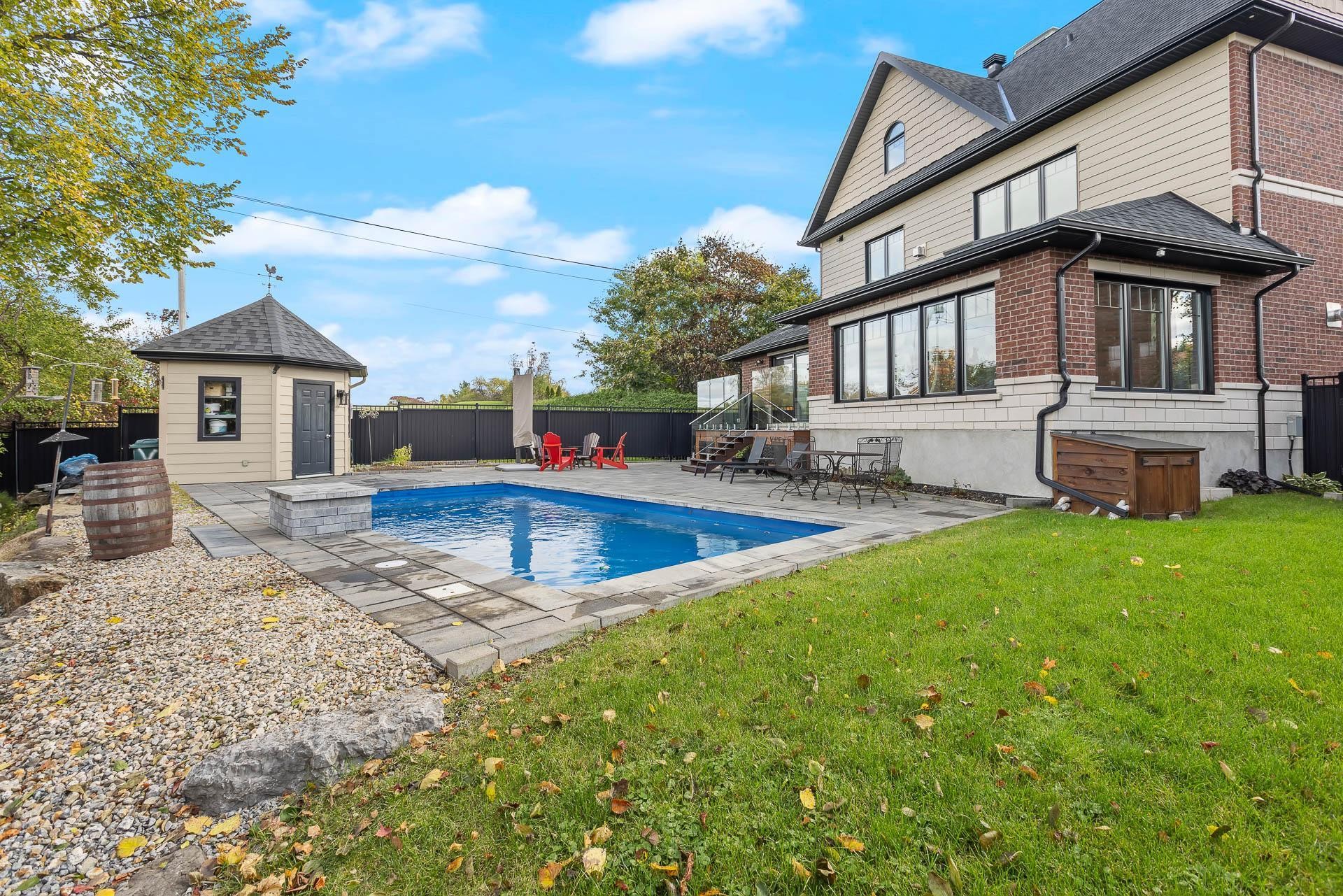 The kitchen is a true masterpiece of design with its immense central island that can accommodate several guests, its numerous cabinets offering maximum storage, and its dining area featuring a skylight and a door opening onto the backyard. The adjacent dining room perfectly completes this welcoming and sophisticated space.