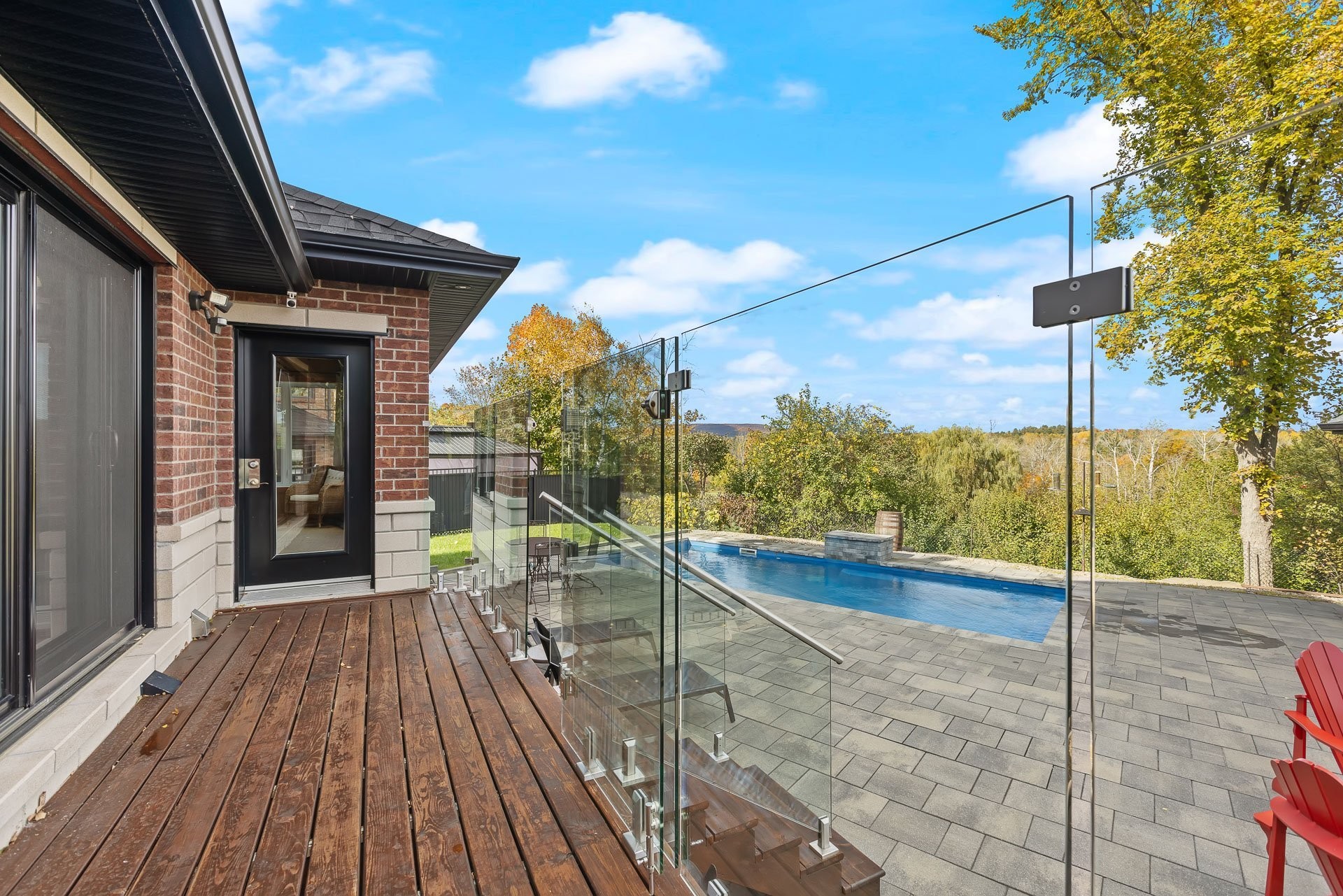 The exterior is a true highlight with a private, fully fenced courtyard, meticulously landscaped gardens and paving, and a superb in-ground pool. The terrace, featuring glass railings, provides an elegant and inviting space for enjoying sunny days.