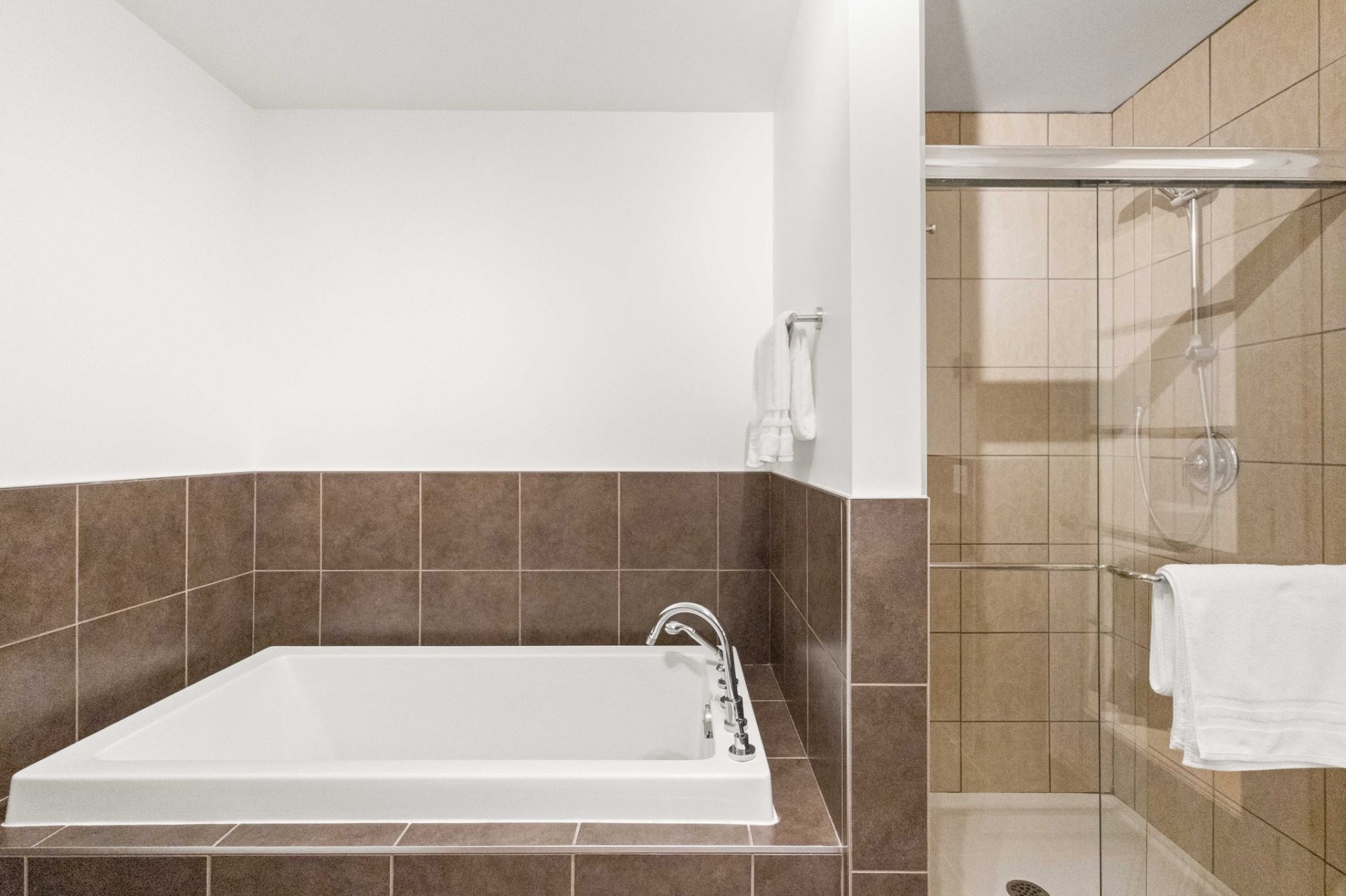 The large bathroom boasts quartz countertops, a separate glass-enclosed shower, and a clean, modern design. Step outside to your private balcony and take in stunning, unobstructed views of the canal--perfect for your morning coffee or evening unwind.