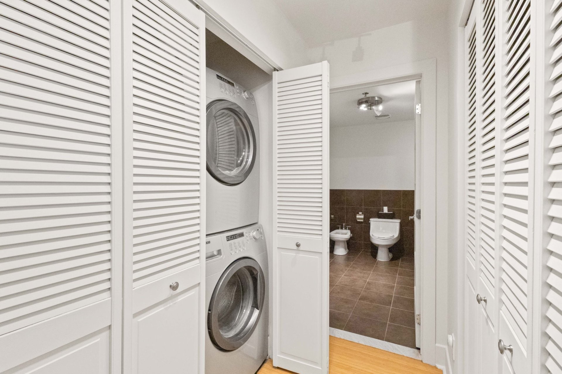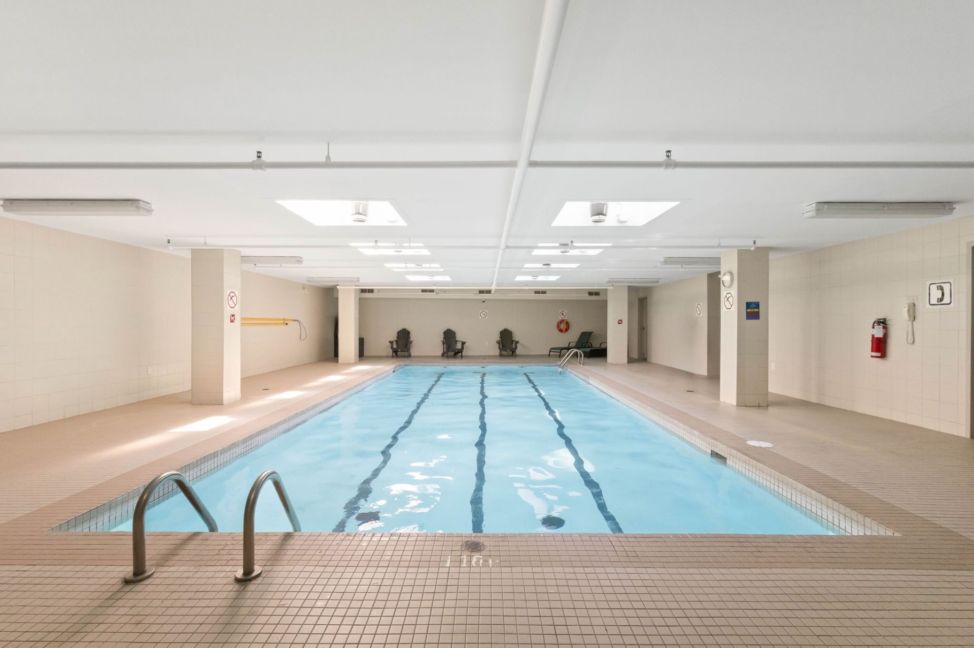 Bright condo on the Lachine Canal with stunning water views. Features a large primary bedroom and a second room with closet--ideal as a bedroom or den. Spacious bathroom with quartz counters and separate shower. Enjoy the balcony, indoor pool, sauna, gym, and free kayak rental. Includes indoor parking and storage. - See addendum