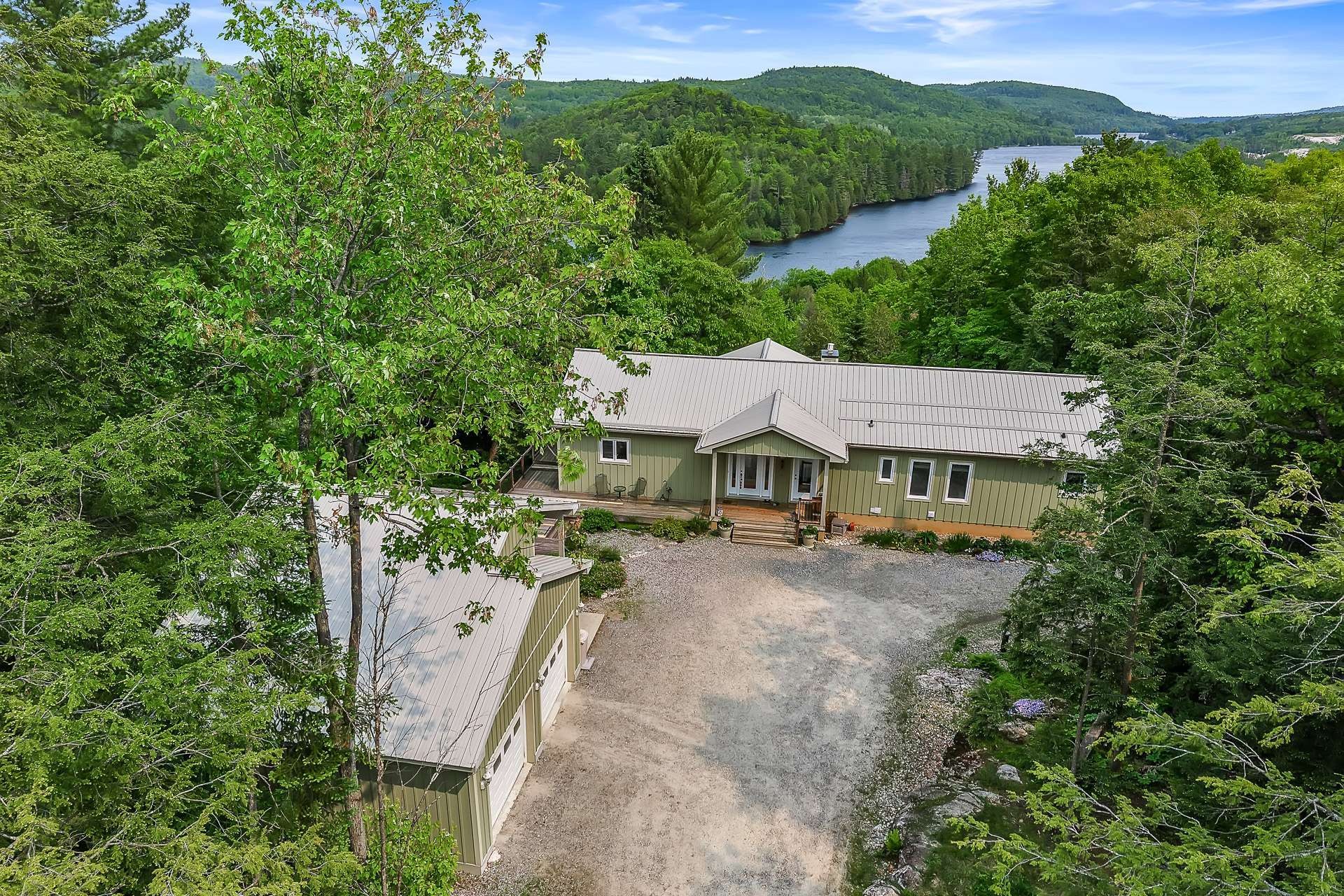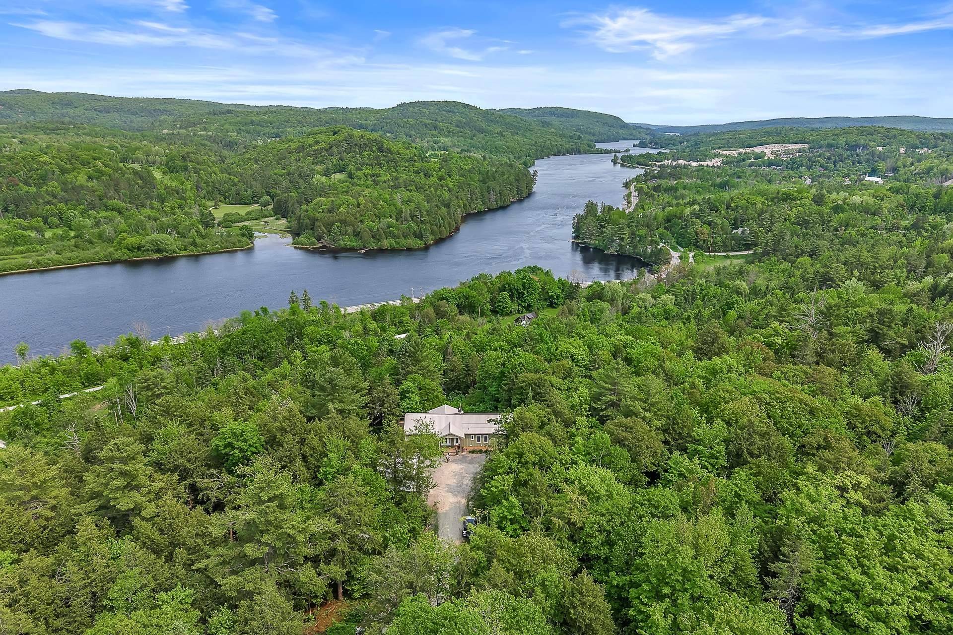 A rare opportunity : Secluded Retreat with Stunning Views of the Gatineau River +/- 20 acres of pristine hemlock forest with your own private trail for hiking, tracking wildlife, or creating the perfect cross-country ski. This 3,400 sq. ft. home offers the perfect blend of rustic charm and modern comfort, featuring a cathedral ceiling in the living room, a durable metal roof and the exterior is finished with Harvey's Board siding . Direct access to trails and the Gatineau river,it makes it ideal for nature lovers. Just 4 minutes from Wakefield and 25 minutes to downtown Ottawa. . A peaceful escape that's sure to steal your heart.