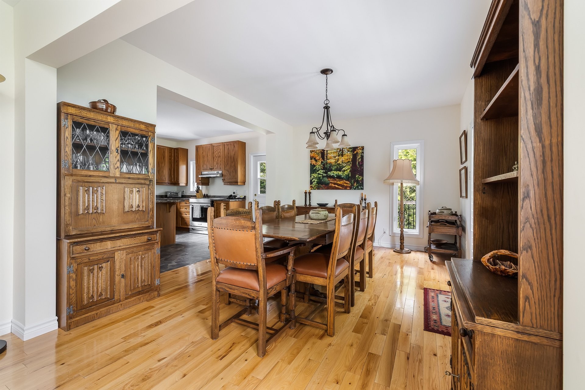 Cette chaleureuse résidence de style champêtre dotée de 5 chambres est idéalement située sur un terrain boisé de plus d'un acre, dans un cul...