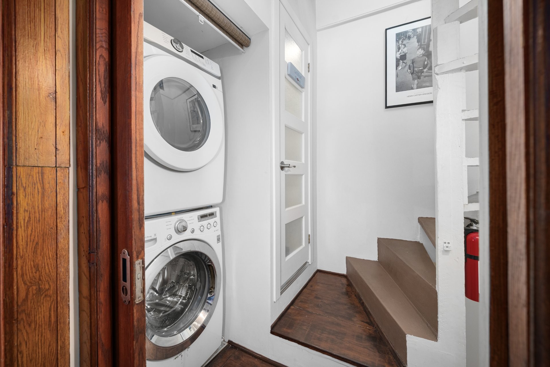 Refrigerator in the hall of the basement.