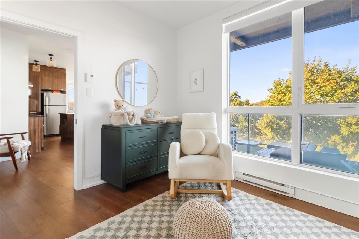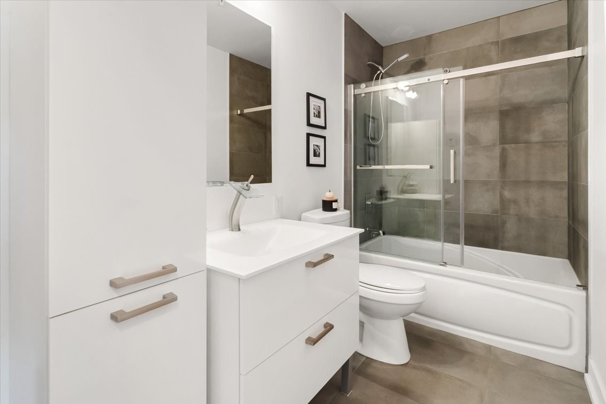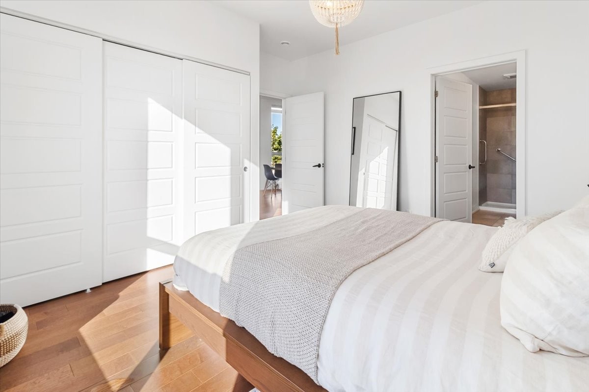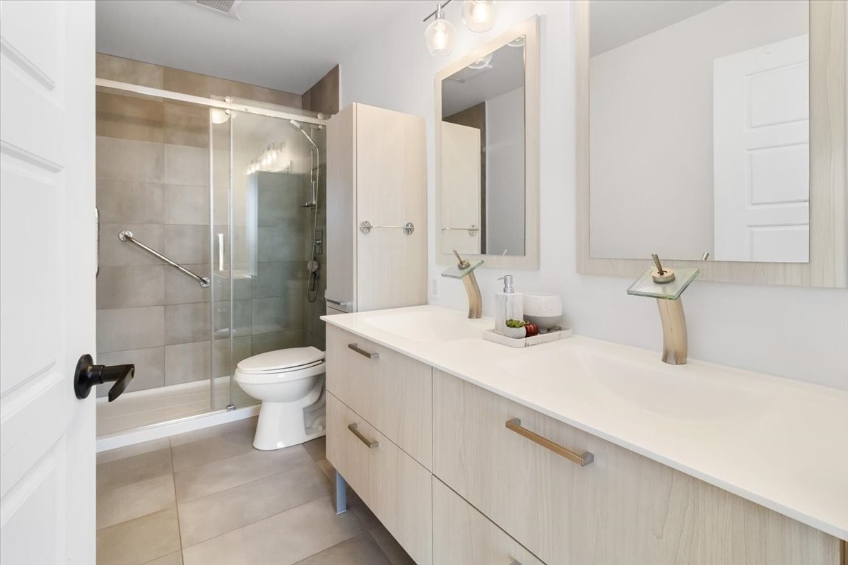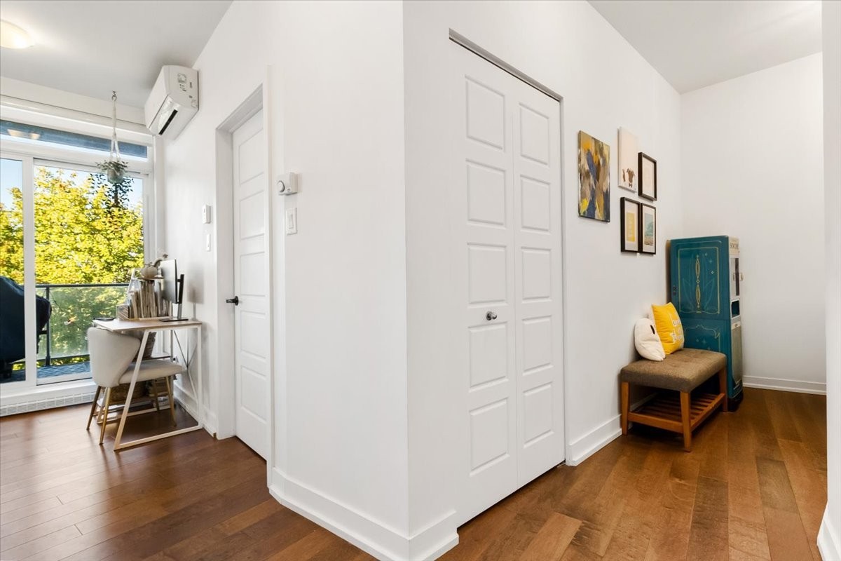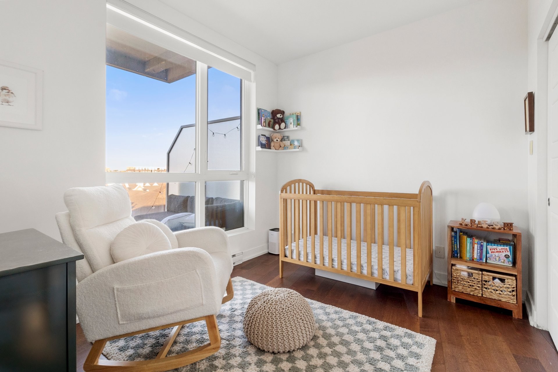 Bright & spacious 2-bed, 2-bath corner unit at Le Daly Morin Phase 3! Featuring 1,034 sq. ft., high ceilings, large windows, a modern kitchen with quartz counters, and a private balcony with southwest views. The primary bedroom includes an ensuite with double vanity and glass shower. Includes garage parking and access to a rooftop terrace. Located near the Lachine Canal, parks, shops, cafés, and transit-offering the perfect mix of nature, convenience, and community living.