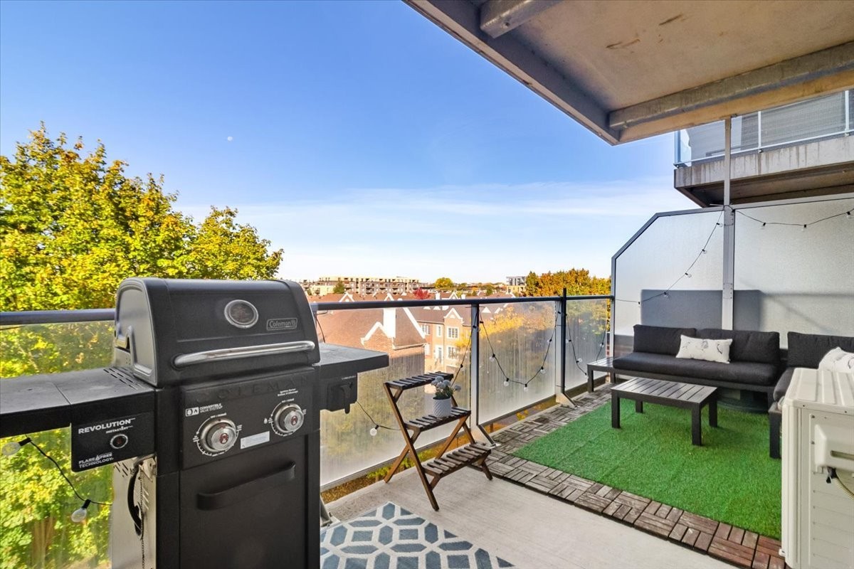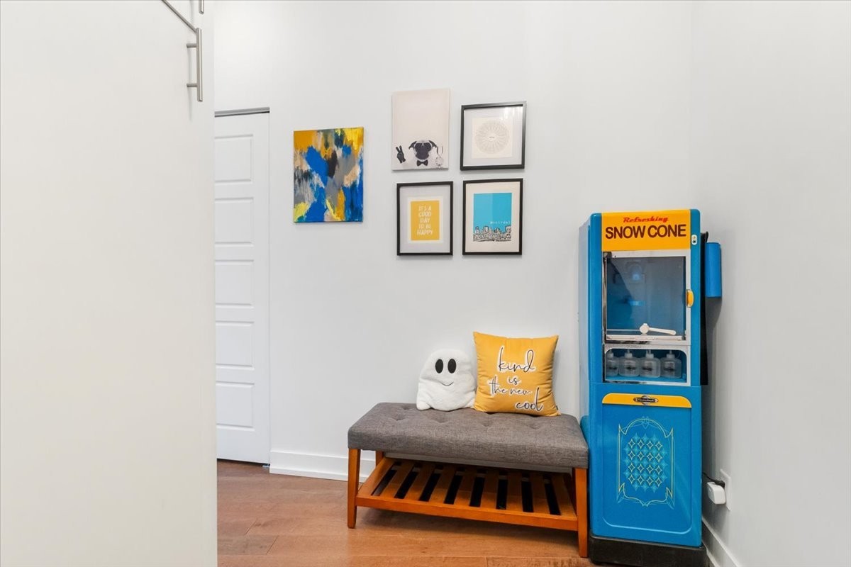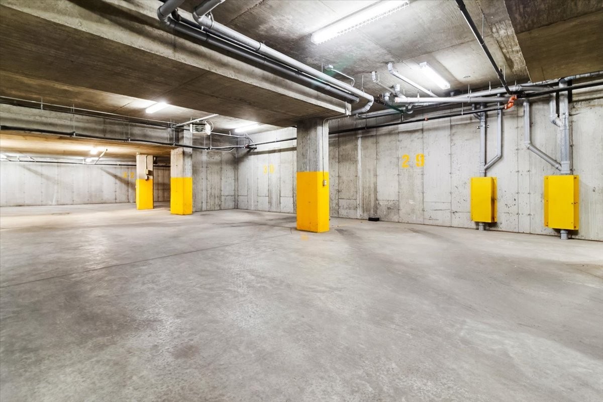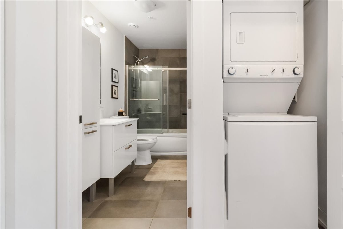 The modern kitchen boasts quartz countertops, ample storage, and an island for additional prep space. The primary bedroom includes an ensuite with a double vanity and a glass shower. A spacious entrance, office nook, and extra storage enhance the unit's functionality. One indoor garage space is included. Building amenities feature a rooftop terrace with stunning panoramic views. This move-in-ready unit is perfect for those seeking style, comfort, and convenience.