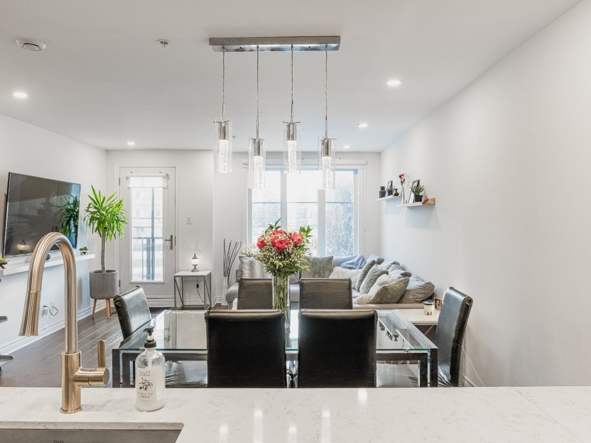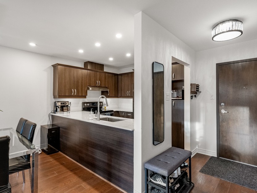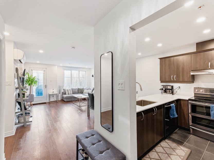 Welcome to 4227 St-Jean, this 780 sqft condo with high-end finishings, appliances included, a master bedroom with an en-suite bathroom and a second room to be used as an office space or child's bedroom. Open-concept kitchen and living area. Kitchen island, great for entertaining. One parking included.