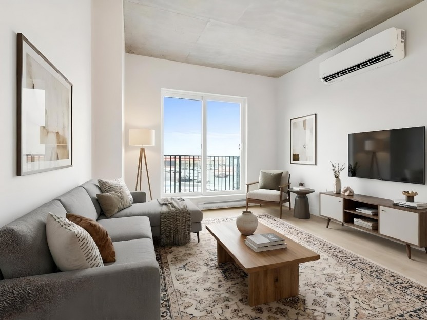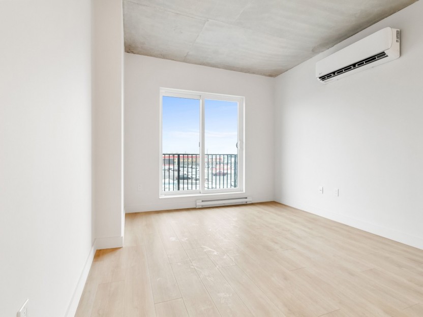 Window coverings for privacy included. Wall-mounted A/C. Secure building access with elevator.