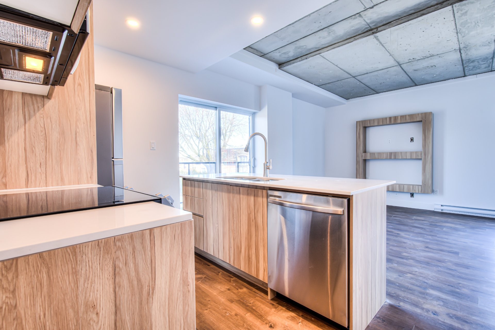 Welcome to 4227 St-Jean, this 750 sqft condo with high-end finishings, appliances included, a master bedroom with an en-suite bathroom and walk in closet, and a second bedroom. Open-concept kitchen and living area. Large kitchen island, great for entertaining. One parking included.