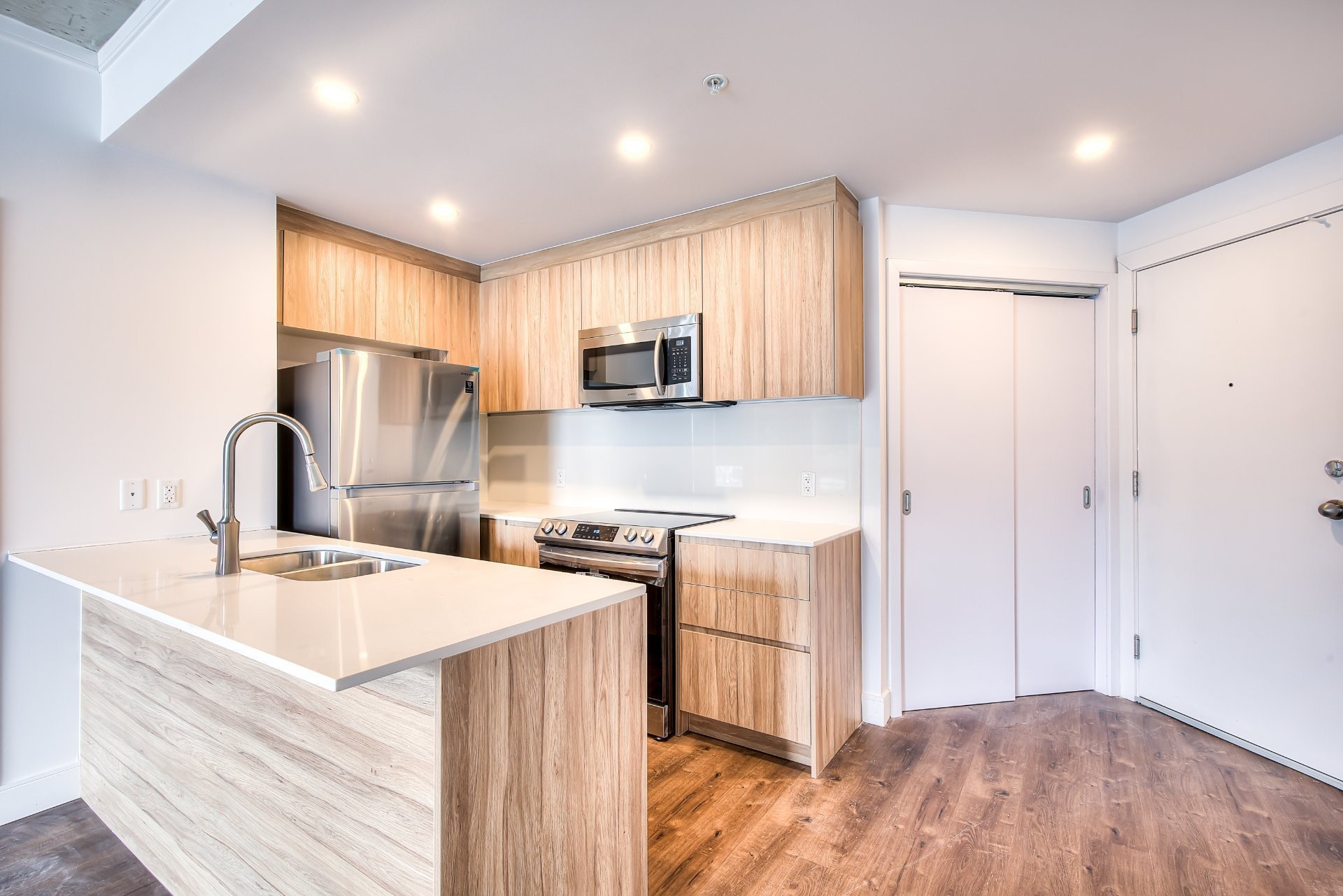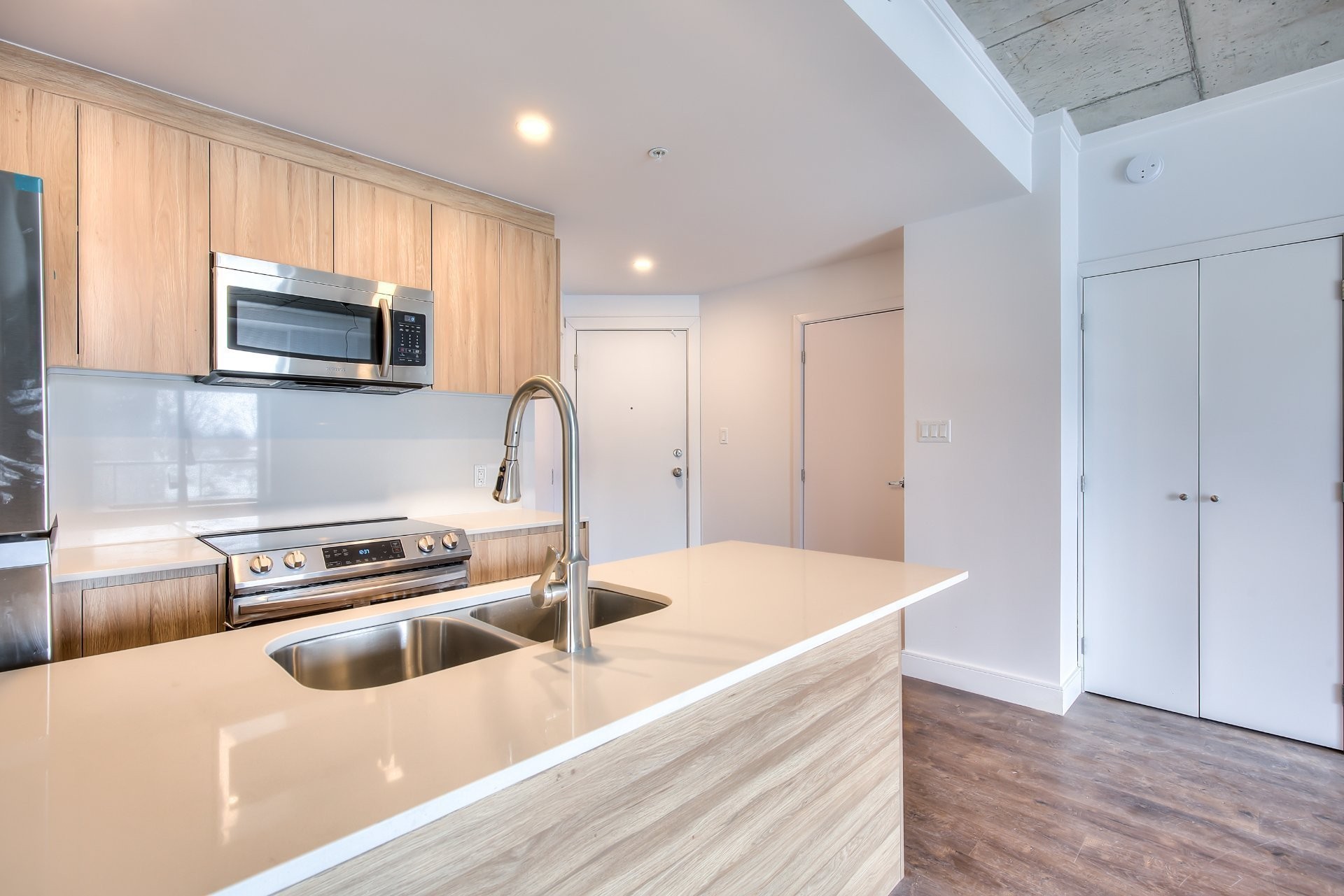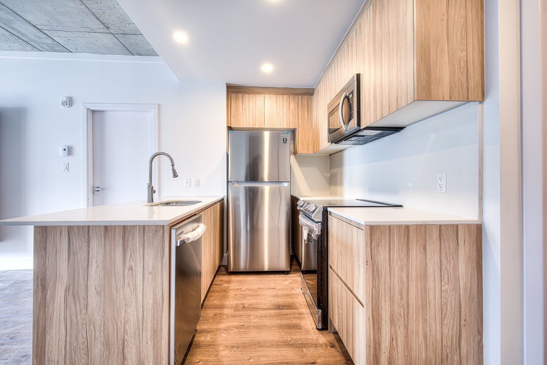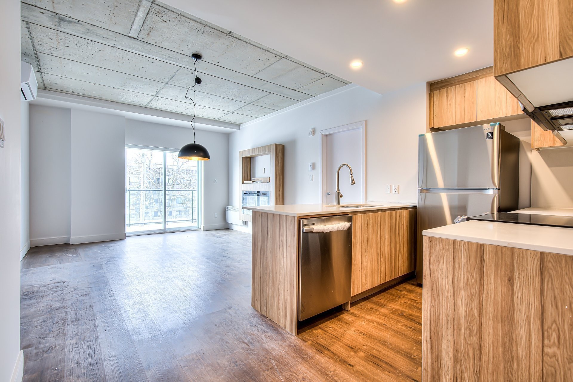 Welcome to 4227 St-Jean, this 780 sqft condo with high-end finishings, appliances included, a master bedroom with an en-suite bathroom and a second room to be used as an office space or child's bedroom. Open-concept kitchen and living area. Kitchen island, great for entertaining. One parking included.