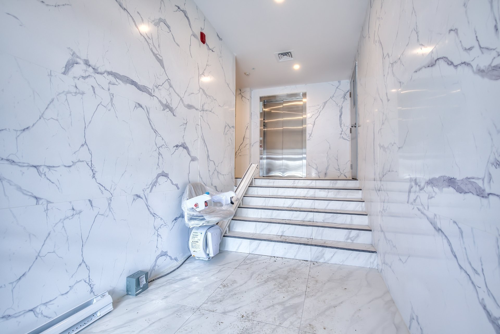 Window coverings for privacy included. Wall-mounted A/C. Secure building access with elevator.