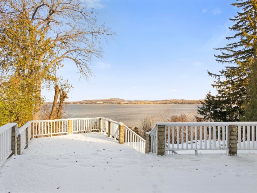 Ce domaine de 4 acres au bord de l'eau offre une élégante résidence en pierre de 5 CACs et 257 pieds de bord de lac, avec des vues panoramiq...