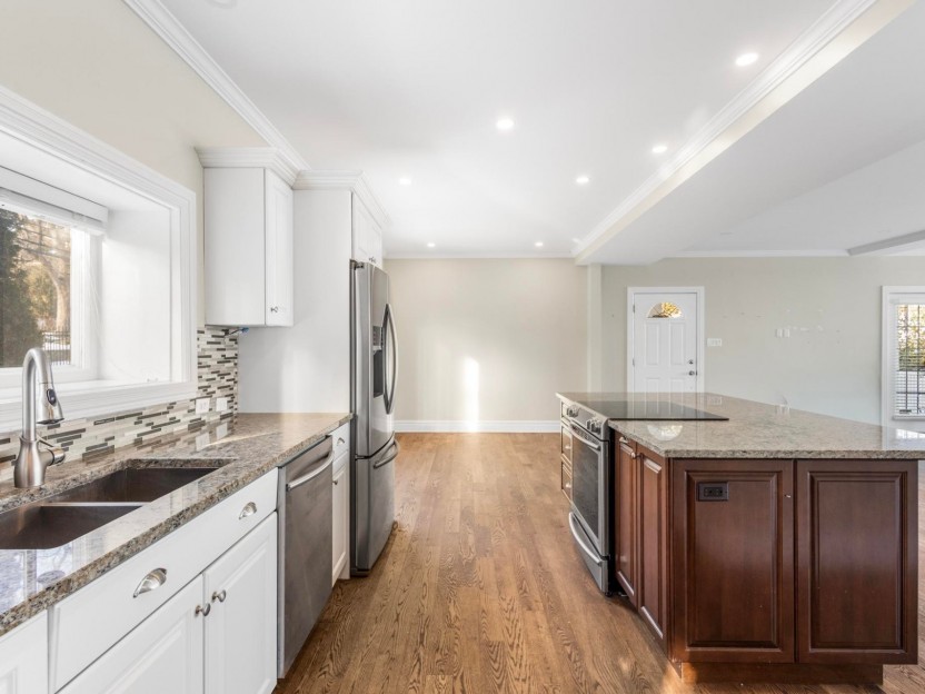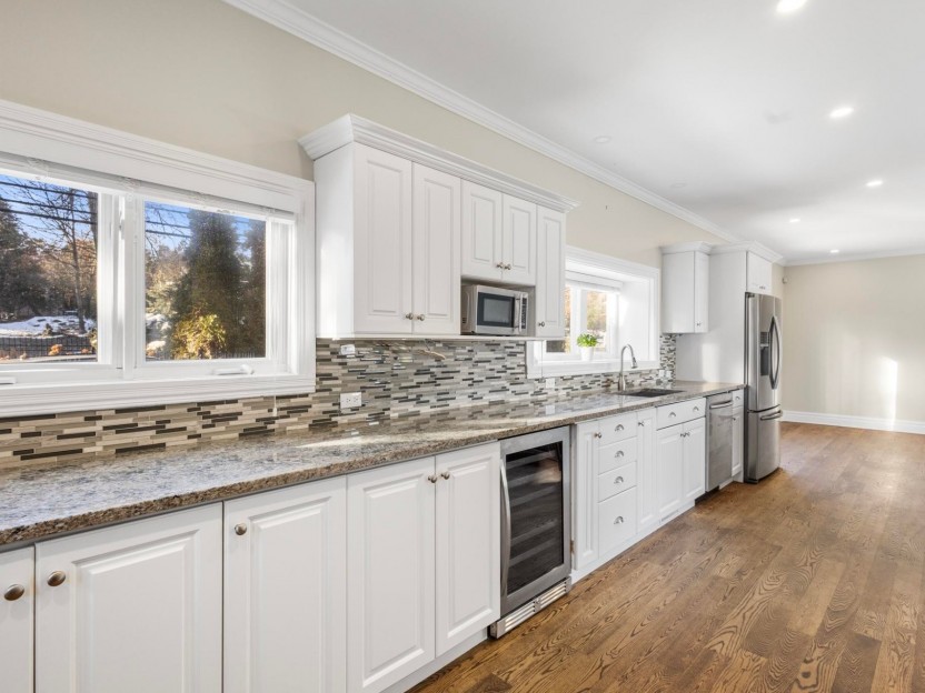The showpiece of the home is the kitchen, a complete rebuild executed within the last three years. It stands out as a top-tier, custom-designed space that cannot be found elsewhere at this price. Full-height cabinetry, quality hardware, integrated appliances, an artisan tile backsplash, marble counters, warm pendant lighting, and meticulous craftsmanship come together to create a kitchen that is as functional as it is beautiful. Every detail reflects thoughtful design and durability, making it a true highlight for anyone who values elevated finishes and practical luxury.